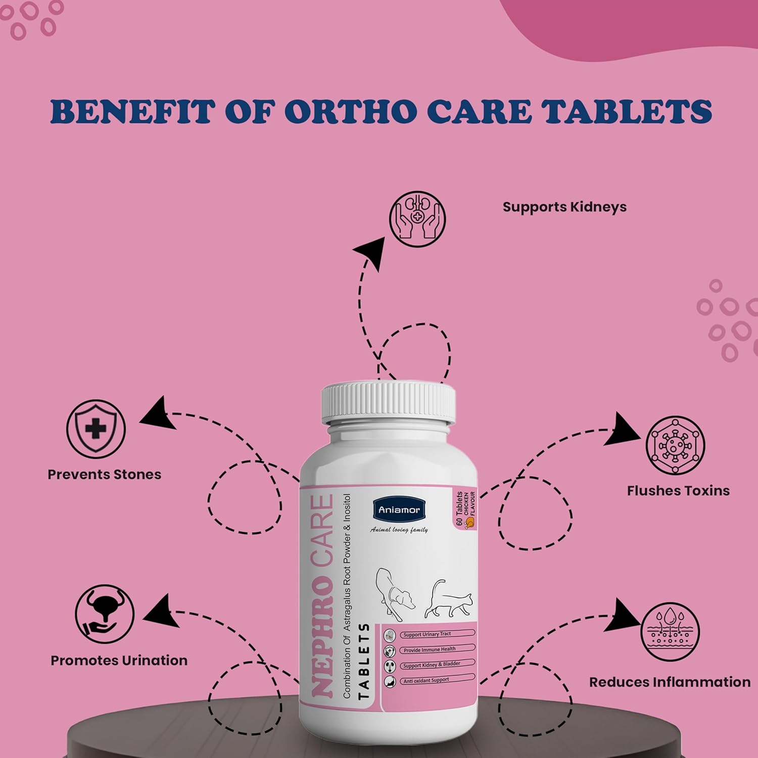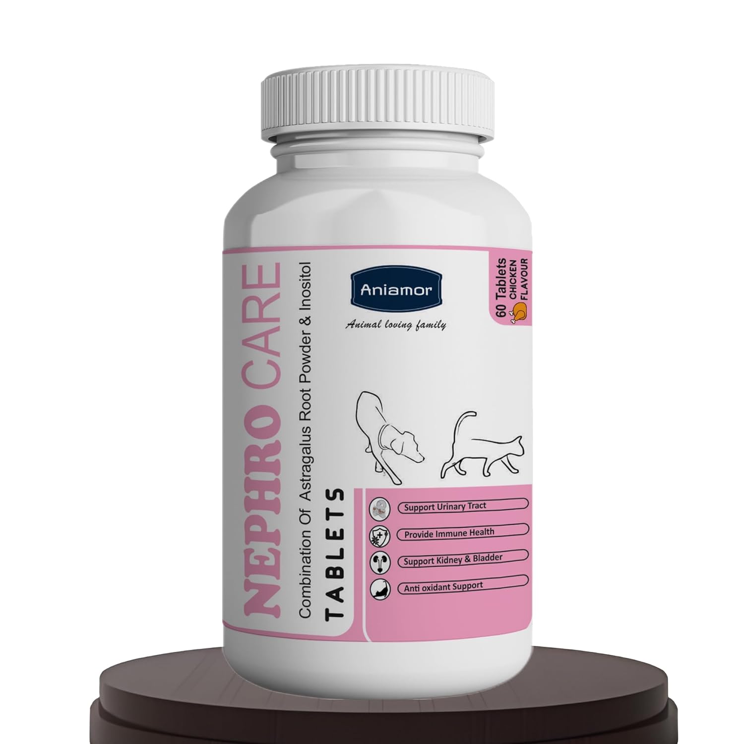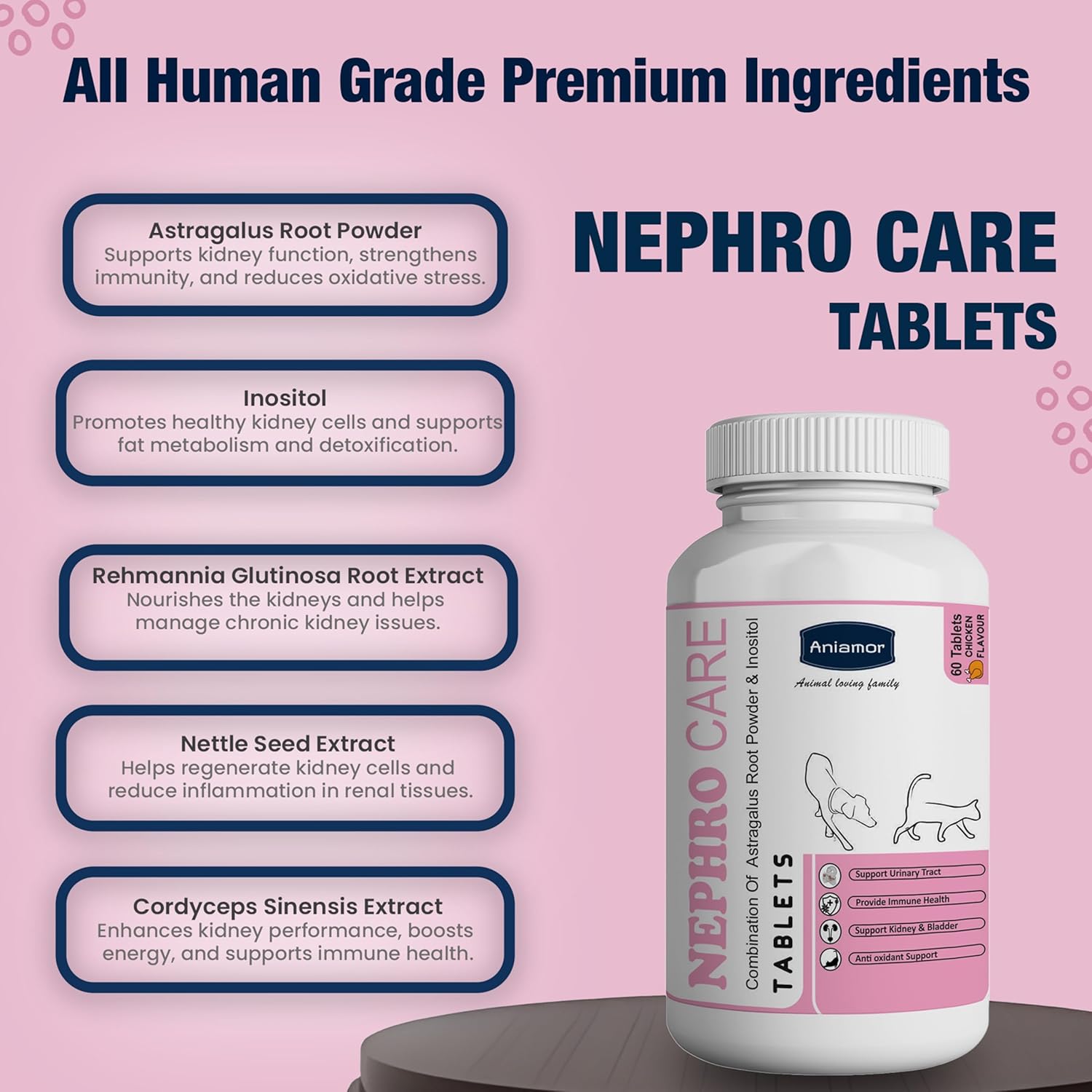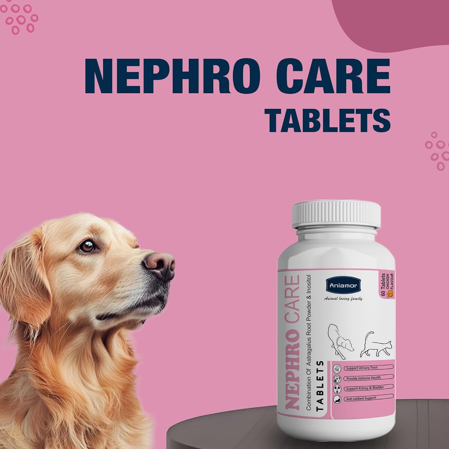 Aniamor Nephro Care Tablets for Dogs and Cats | Supports The Urinary Tract | Dogs and Cats Supplement | Chicken Flavour | for All Life Stages | 60 Tablets