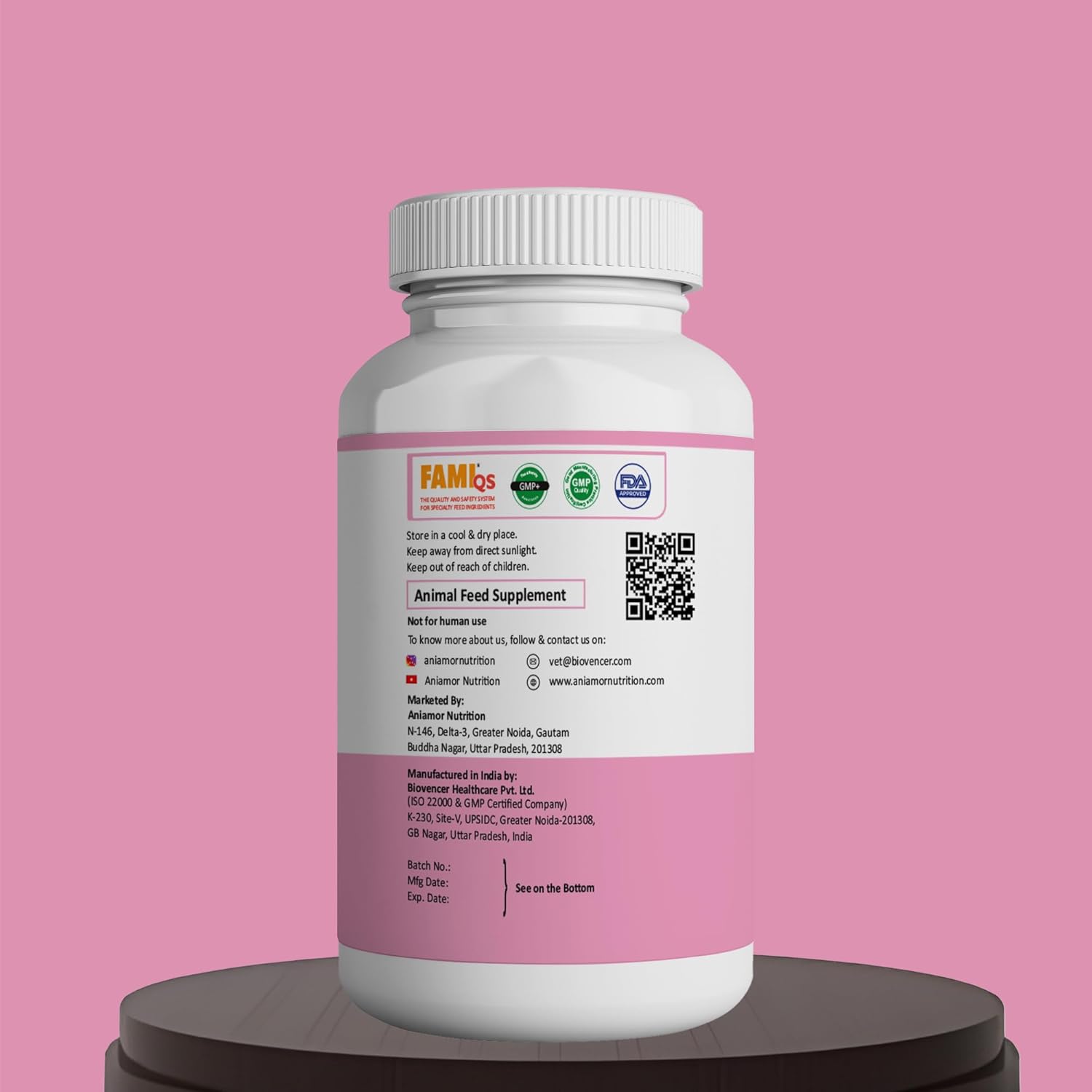 The Aniamor Nephro Care Tablets are designed to support the urinary tract health of both dogs and cats. These tablets come in a chicken flavor, making them appealing to pets of all life stages. Each bottle contains 60 tablets, providing a convenient supply for pet owners. Aniamor Nutrition emphasizes quality and scientific formulation, ensuring that pets receive effective nutritional support.