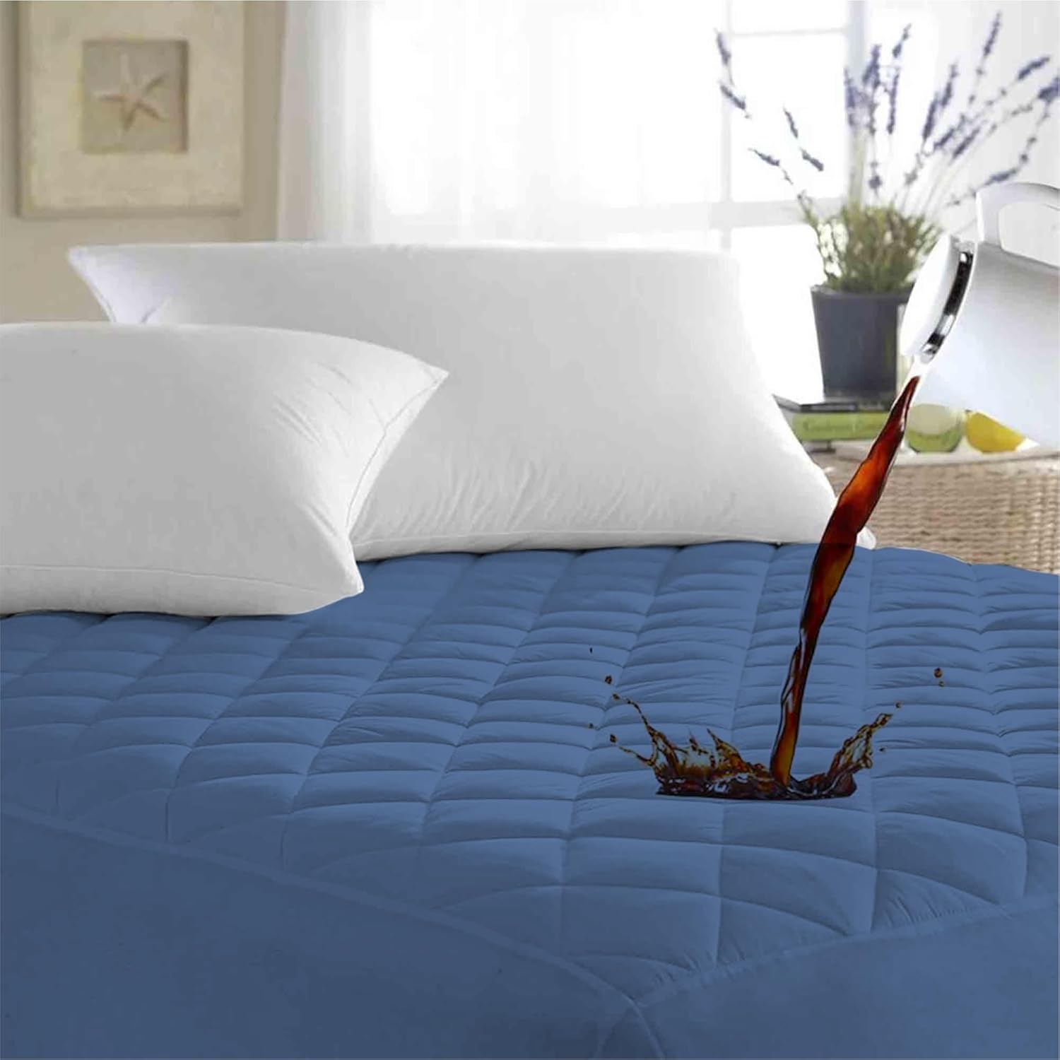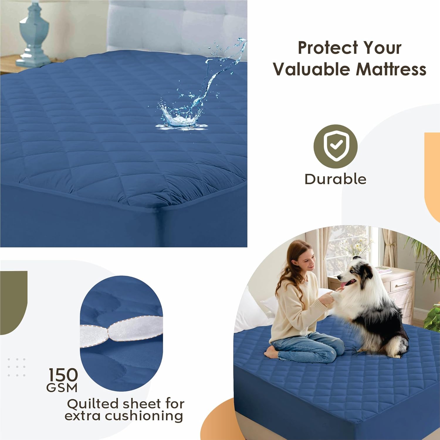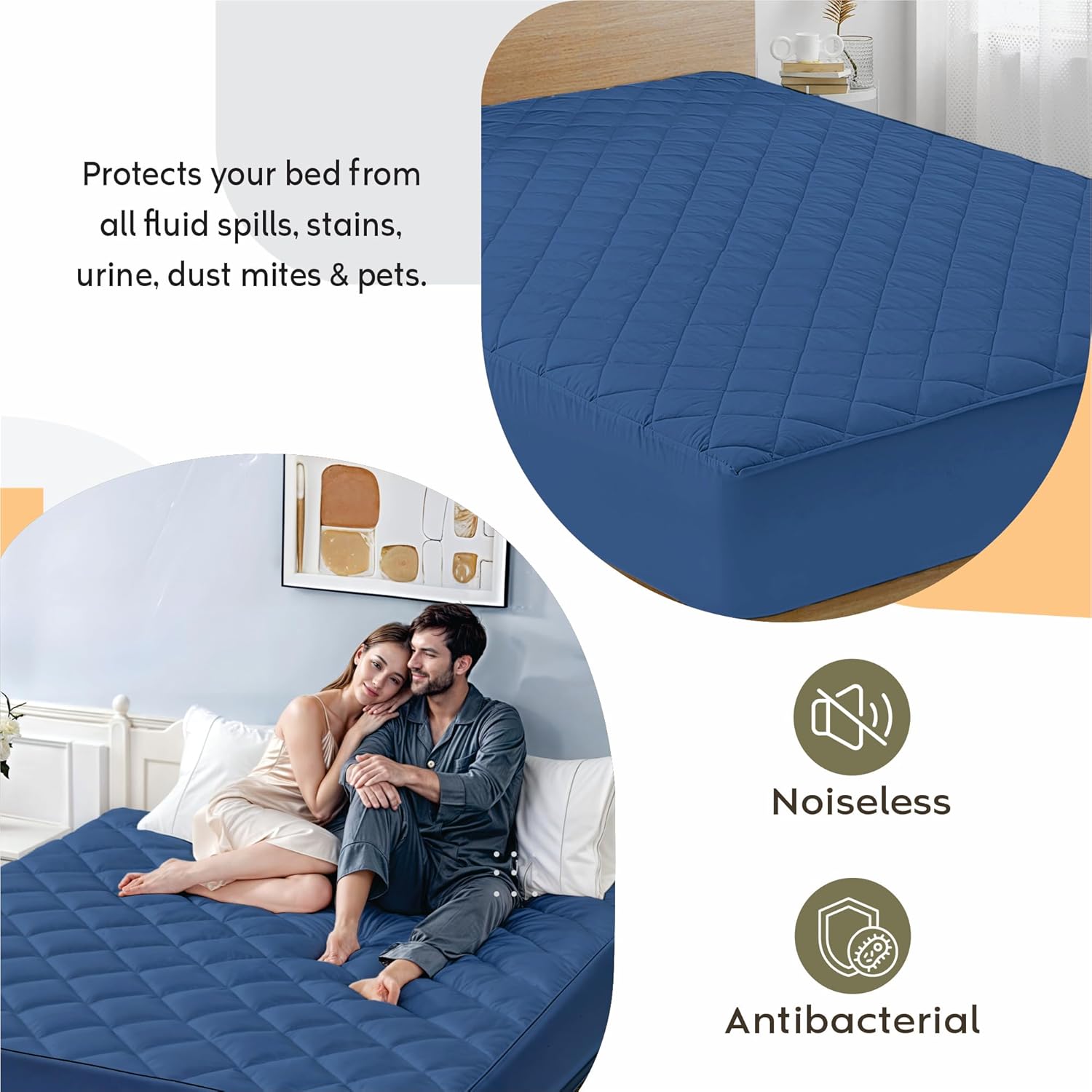 Ayka 100% Waterproof Cotton Quilted Mattress Protector King Size Breathable Hypoallergenic Noiseless Ultra Soft Fitted Bed Protector 78×72 inch Mattress/Bed Cover (Med Blue, King (78 * 72”))