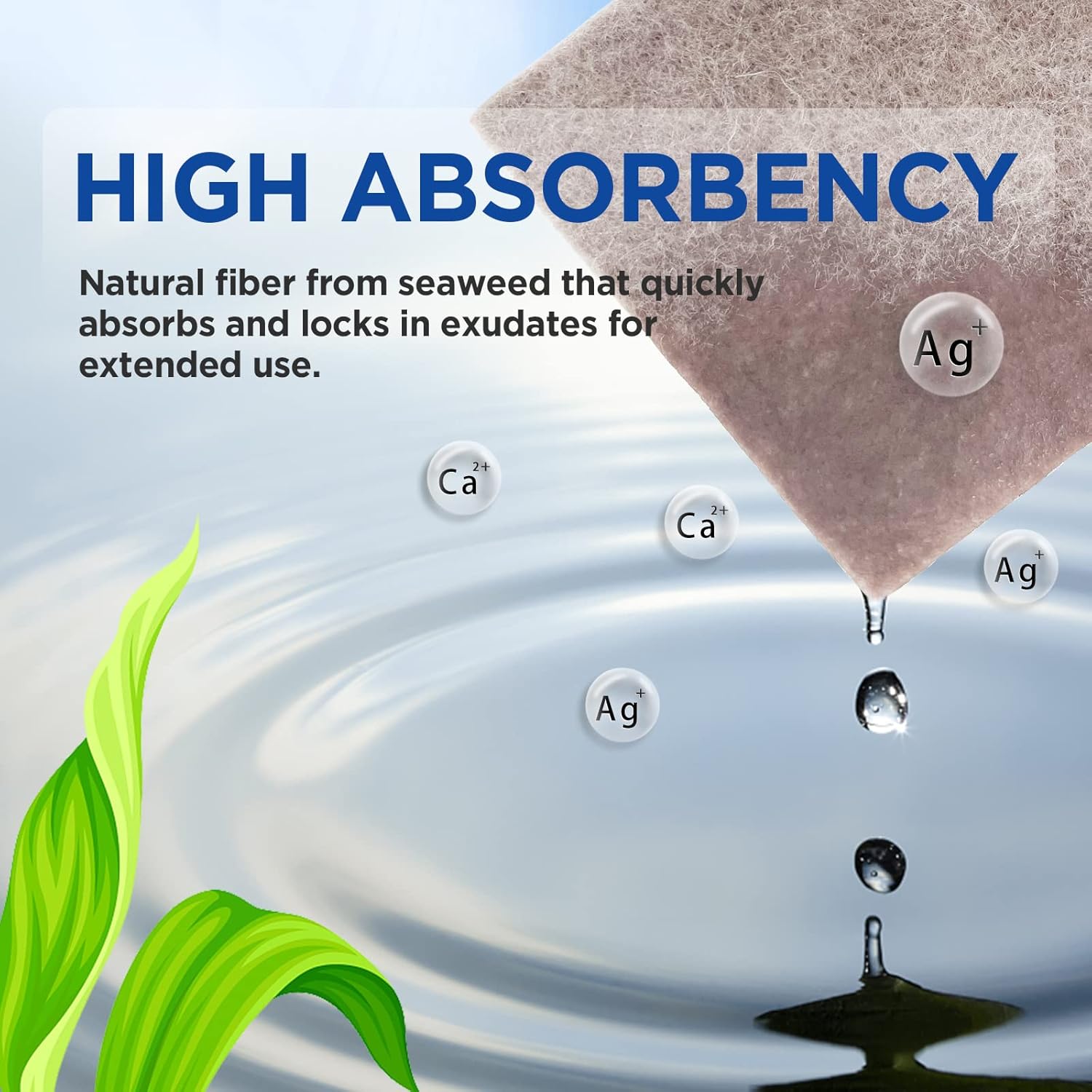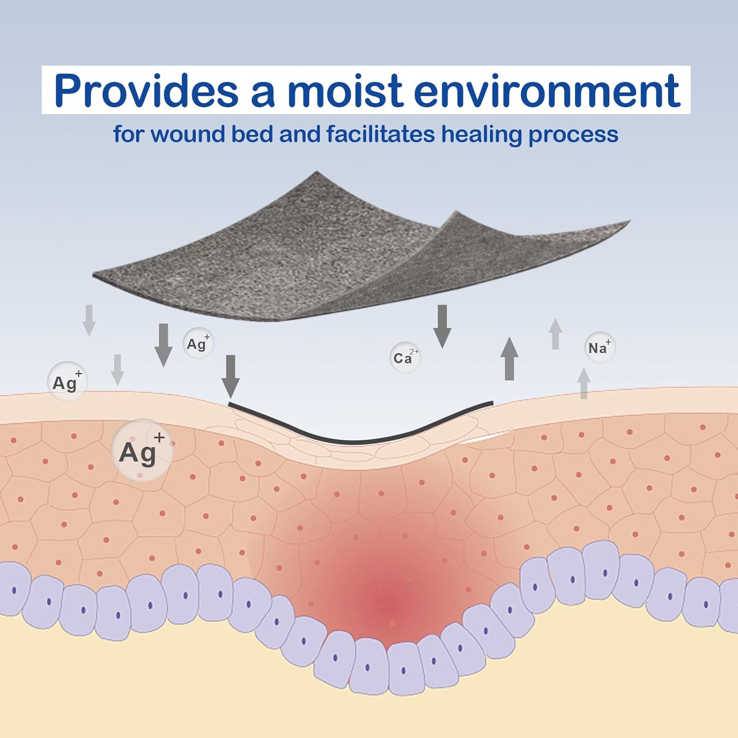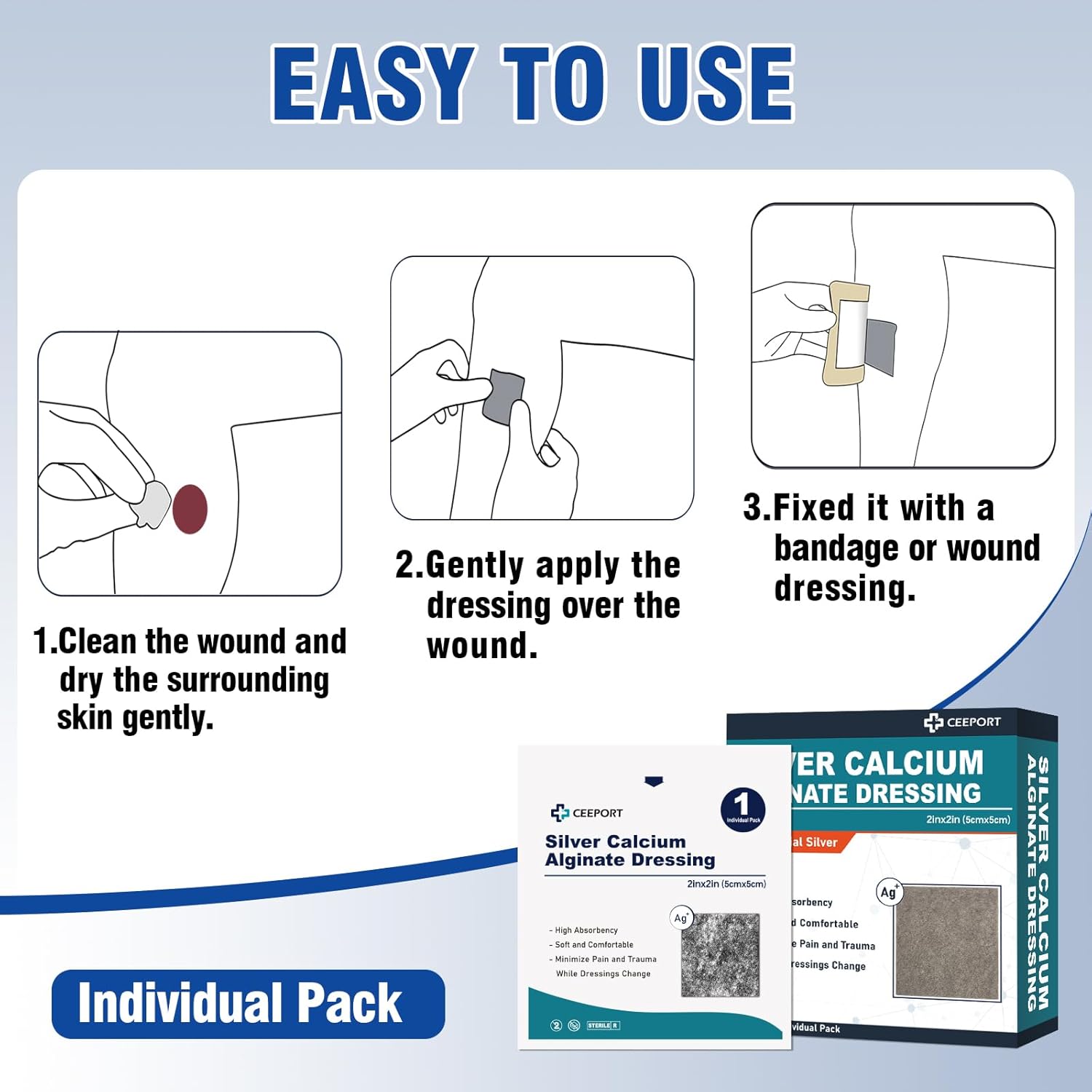 Ceeport Ag Silver Calcium Alginate Wound Dressings 5 x 5 cm 12 Individual Packs, Highly Absorbent Painless Removal Dressings, Soft Silver Dressing for the
