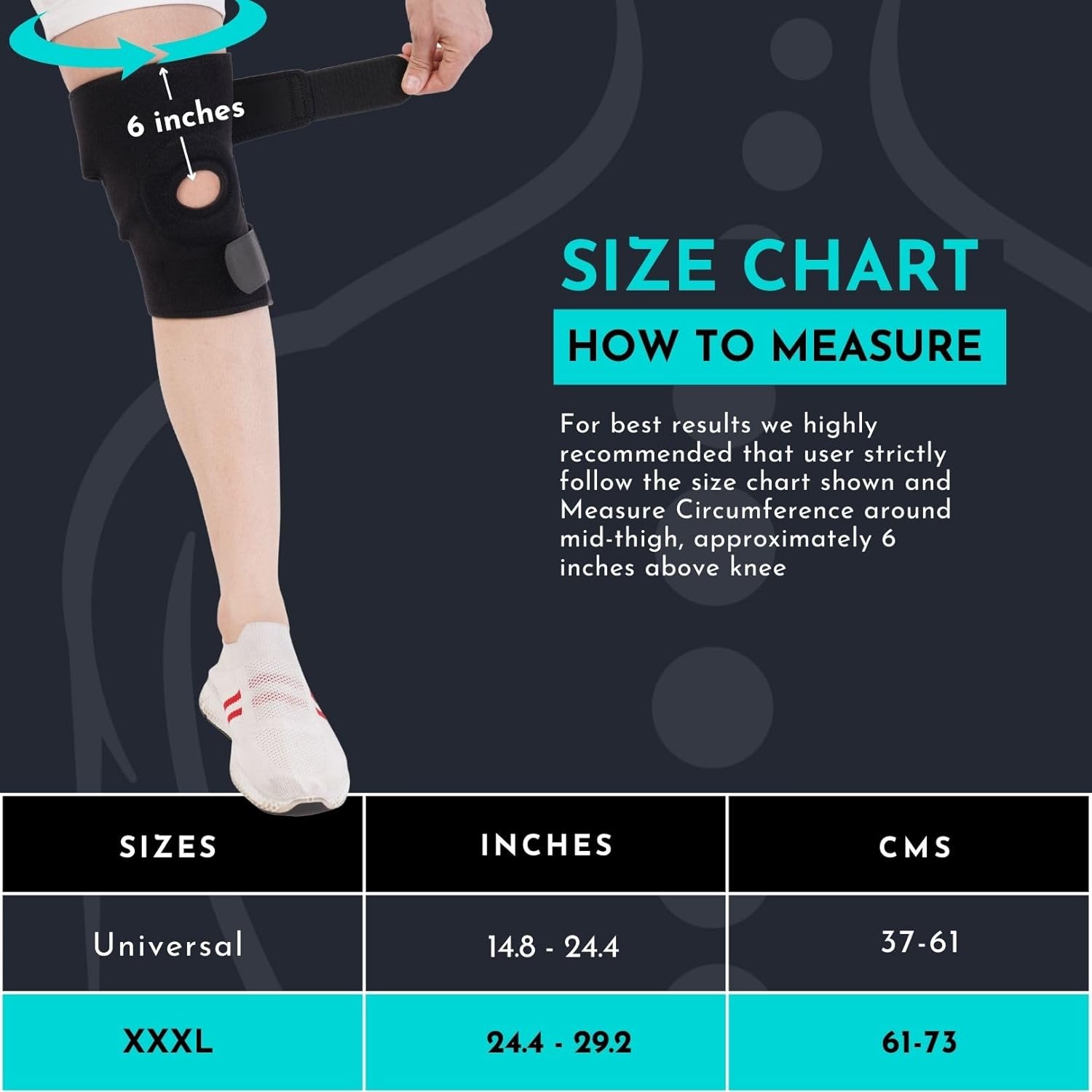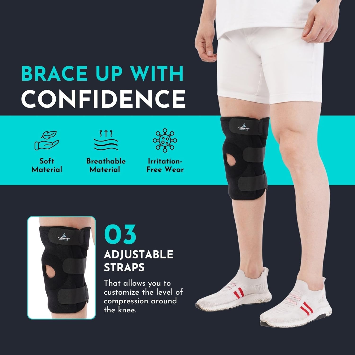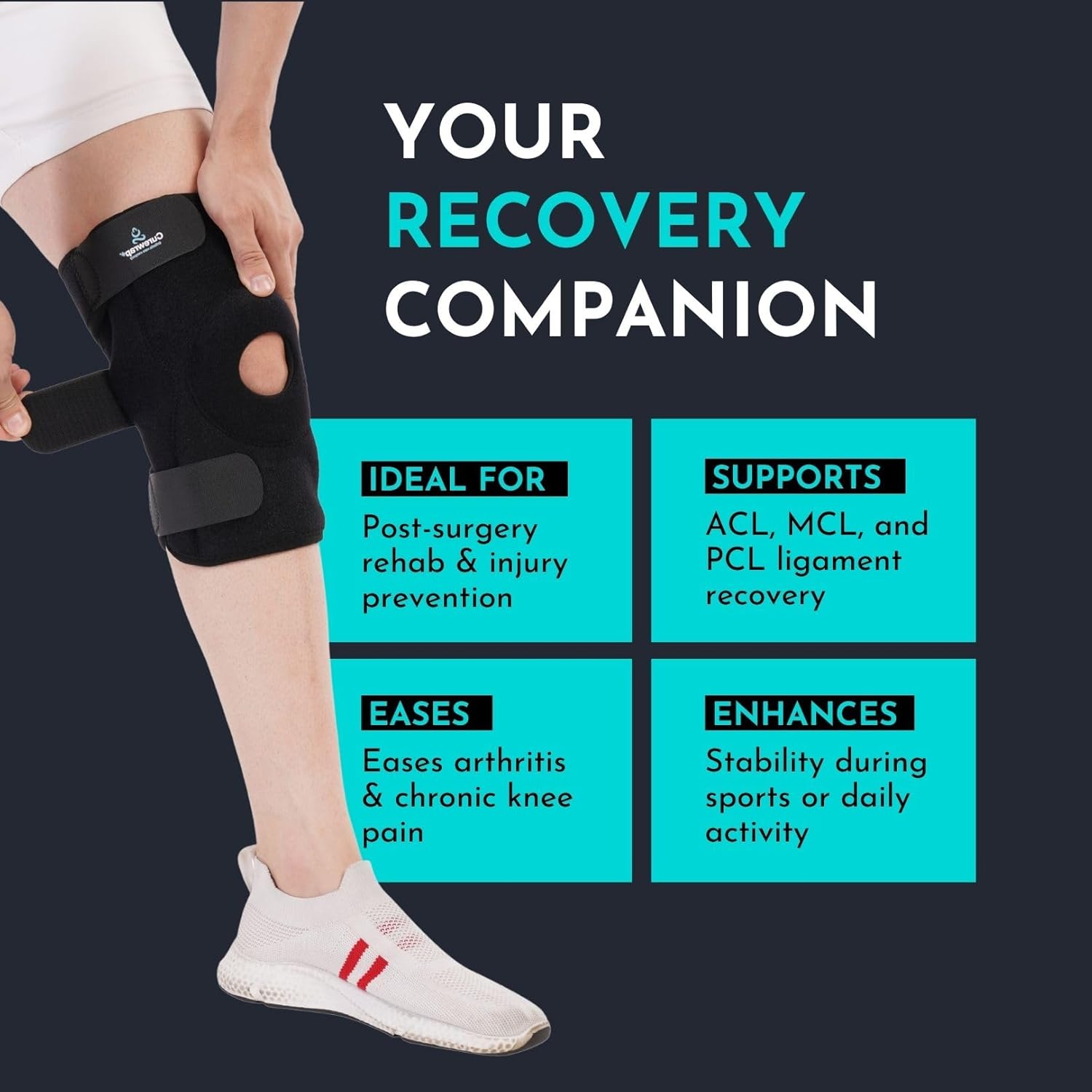 The CUREWRAP Adjustable Neoprene Hinged Knee Brace is designed to provide support and relief for various knee issues. This universal size brace fits knee circumferences from 14.8" to 24.4", making it suitable for both men and women. It is ideal for those recovering from ACL injuries, meniscus tears, ligament injuries, arthritis, or post-surgery rehabilitation.