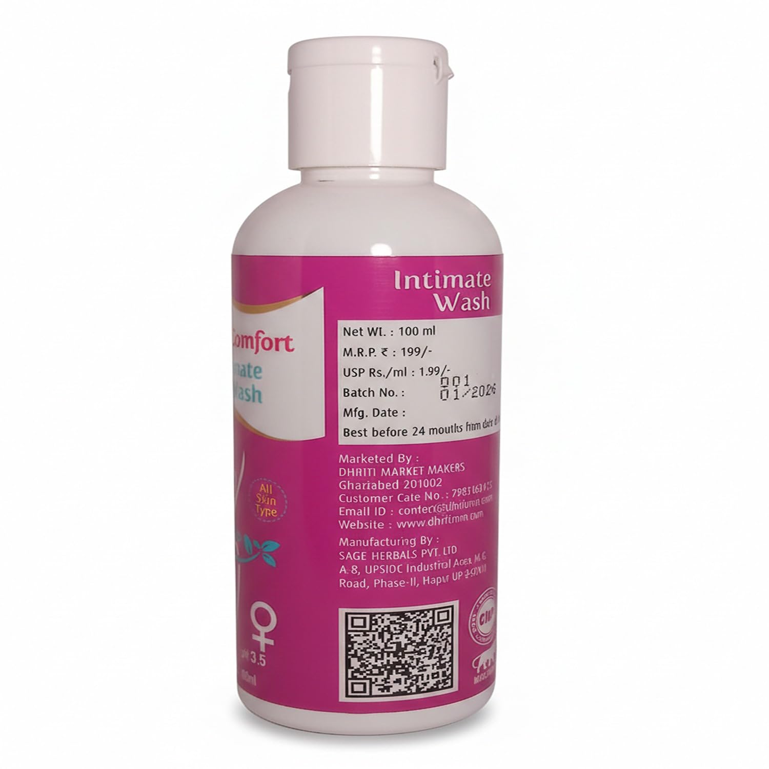 DMM Store CleanComfort Intimate Wash for Women, pH 3.5 Balanced Formula, Sensitive Skin, Daily Feminine Hygiene with Natural Extracts, 100ml