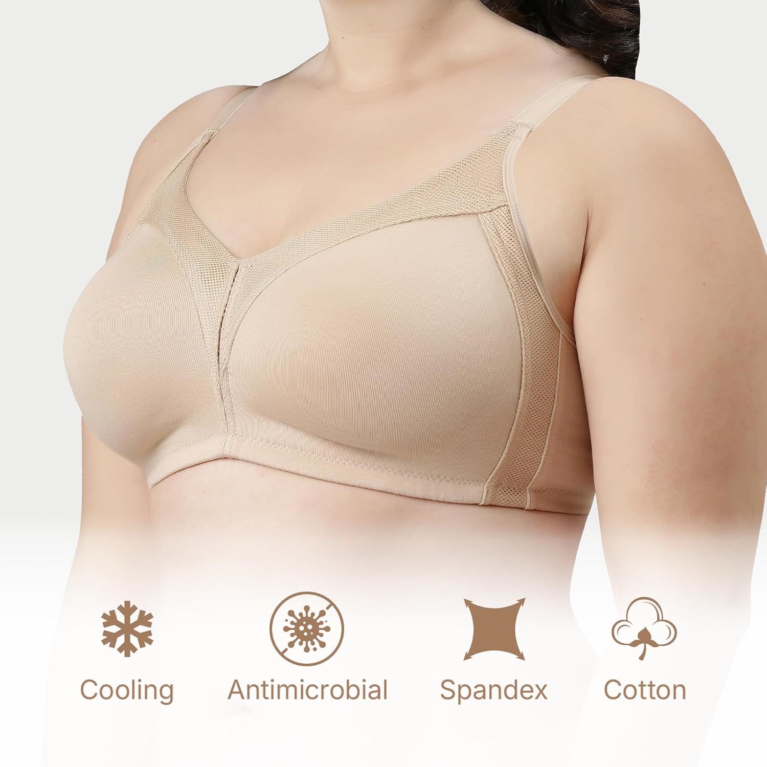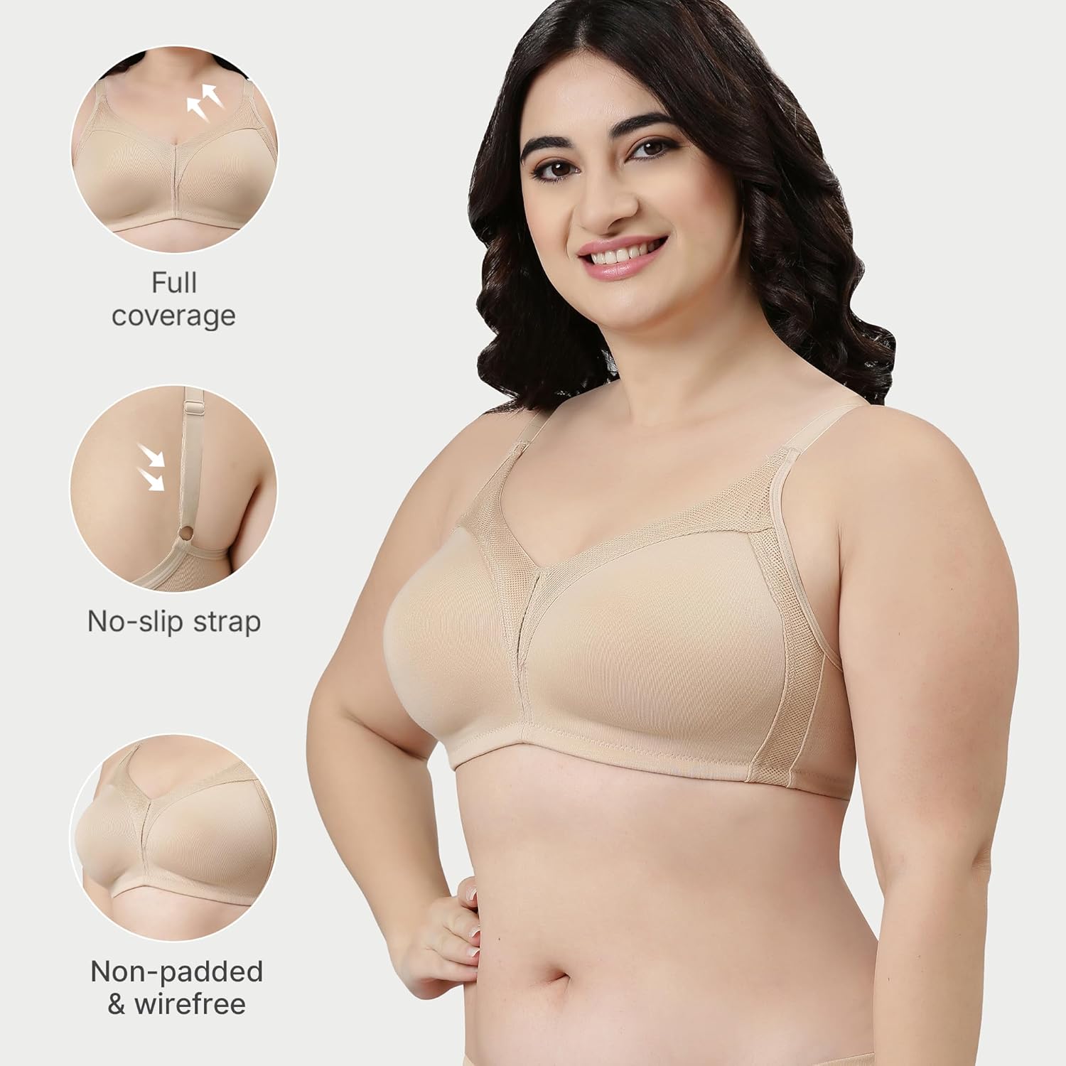 Enamor AB75 M Frame No Bounce Full Support Cotton Bra for Women – Non-Padded Non-Wired & Full Coverage with Cooling Technology | Available in Solid Colours