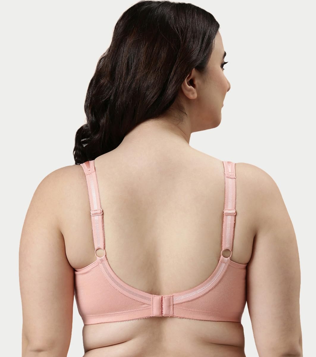 The Enamor Full Support Super Lift Women's Cotton Everyday Minimizer Bra is designed for comfort and functionality. This wire-free, full coverage bra is perfect for daily wear, providing excellent support without compromising on style. The smooth, moulded cups ensure a seamless look under clothing, making it an ideal choice for body-hugging outfits.