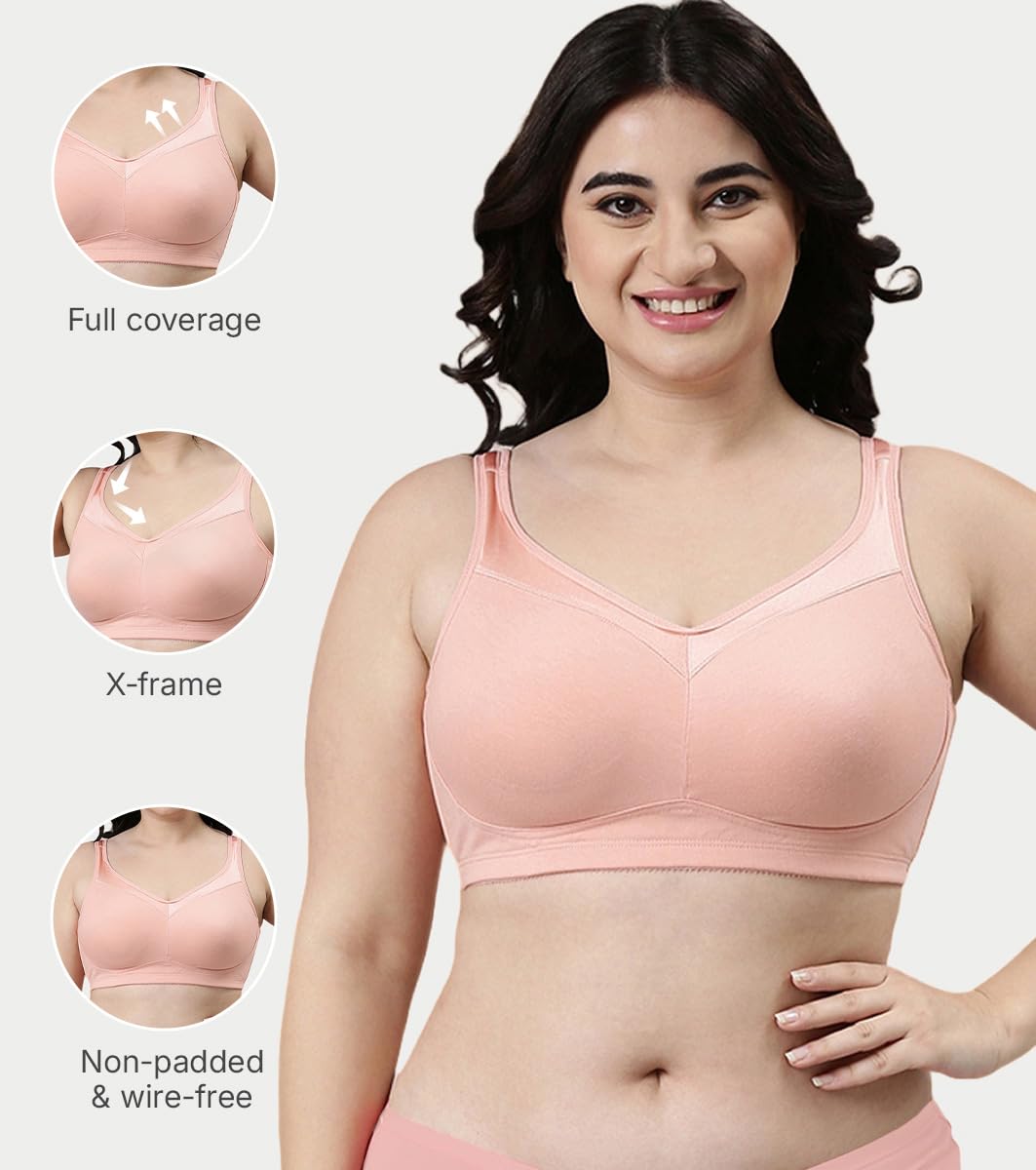 Enamor Full Support Super Lift Women’s Cotton Everyday Minimizer Bra – Non Padded, Wirefree, Full Coverage – A112 (Available in Plus Sizes)