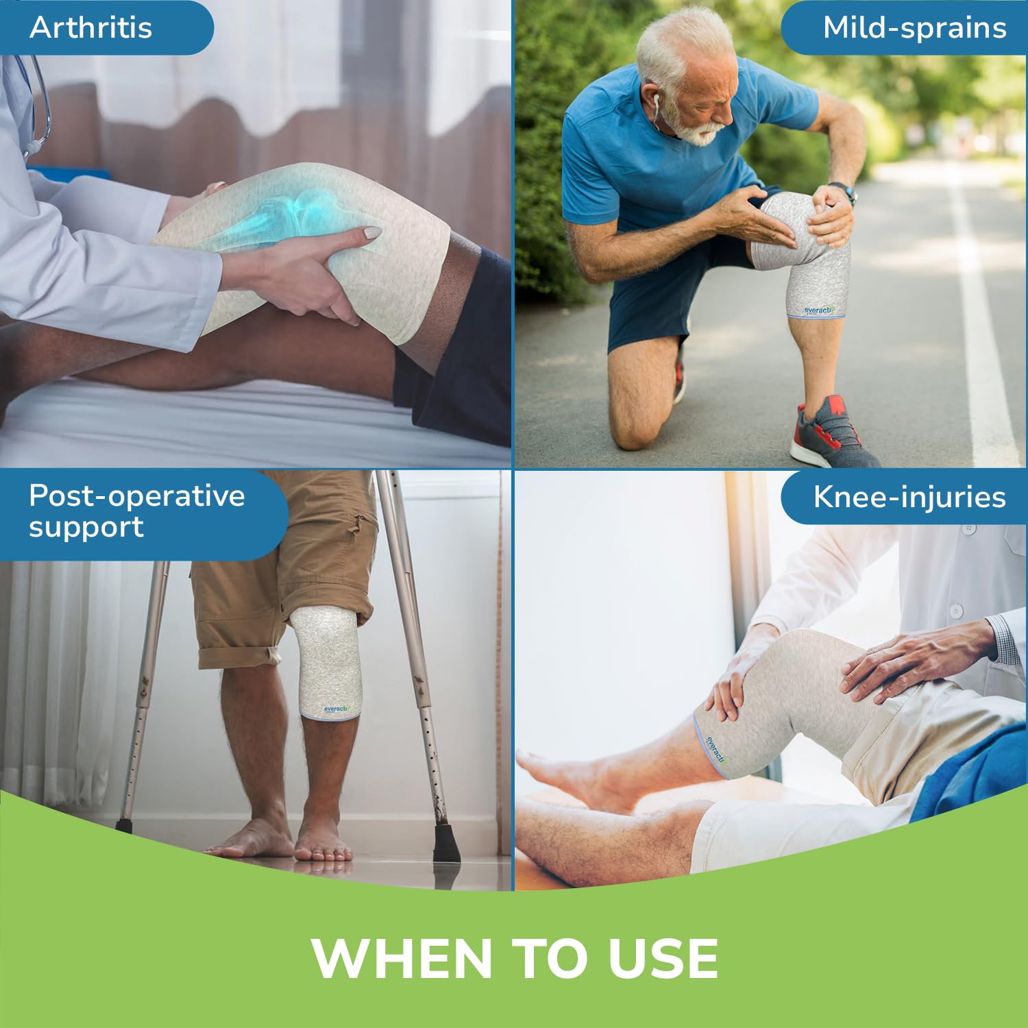 Everactiv Knee Support Sleeve – Compression Support for Arthritis, Joint Pain, and Post-Operative Recovery | Breathable Cotton Inner Lining | Unisex | 1 Pair (Large)