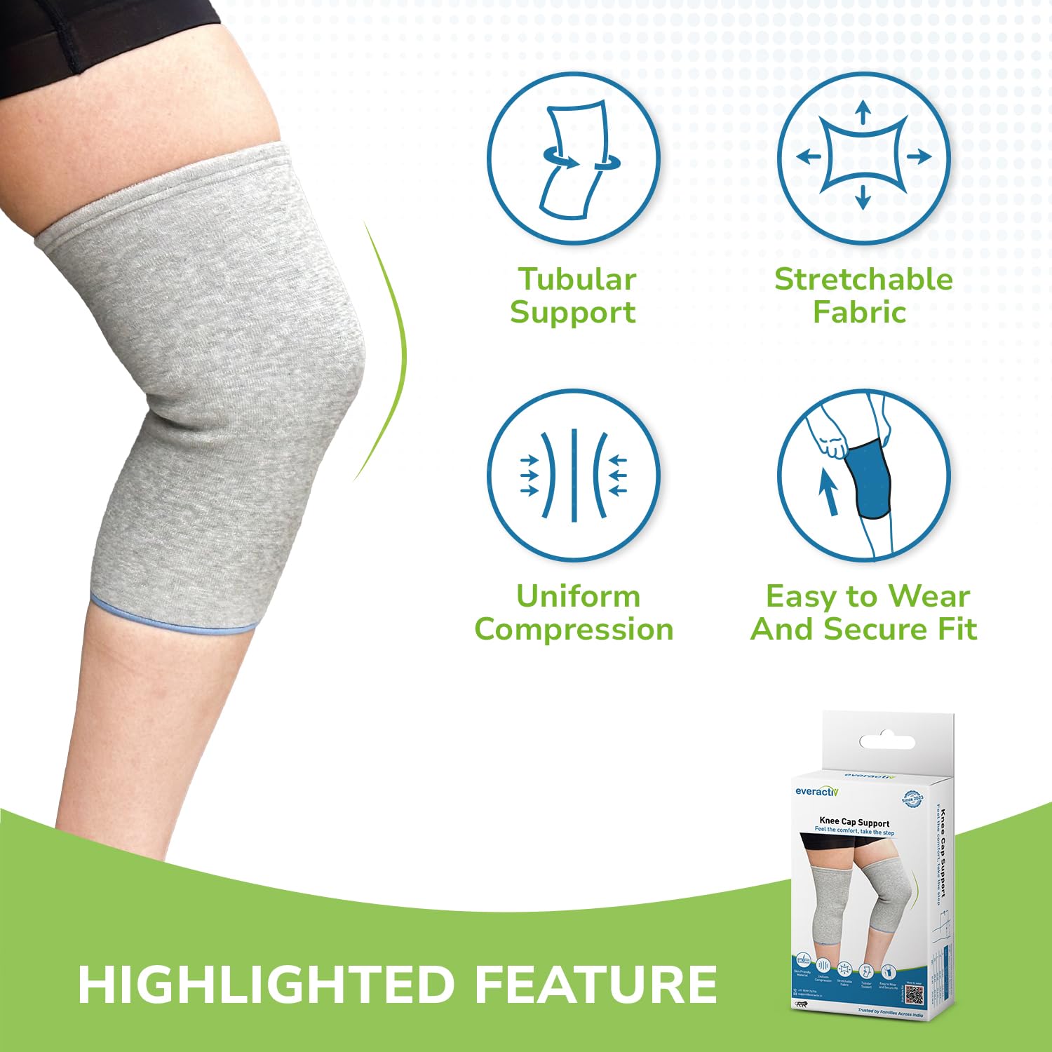 The Everactiv Knee Support Sleeve is designed for compression support for arthritis, joint pain, and post-operative recovery.