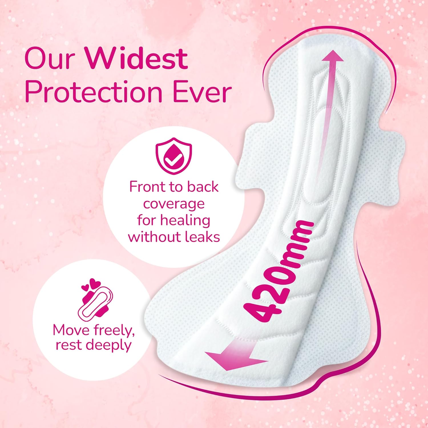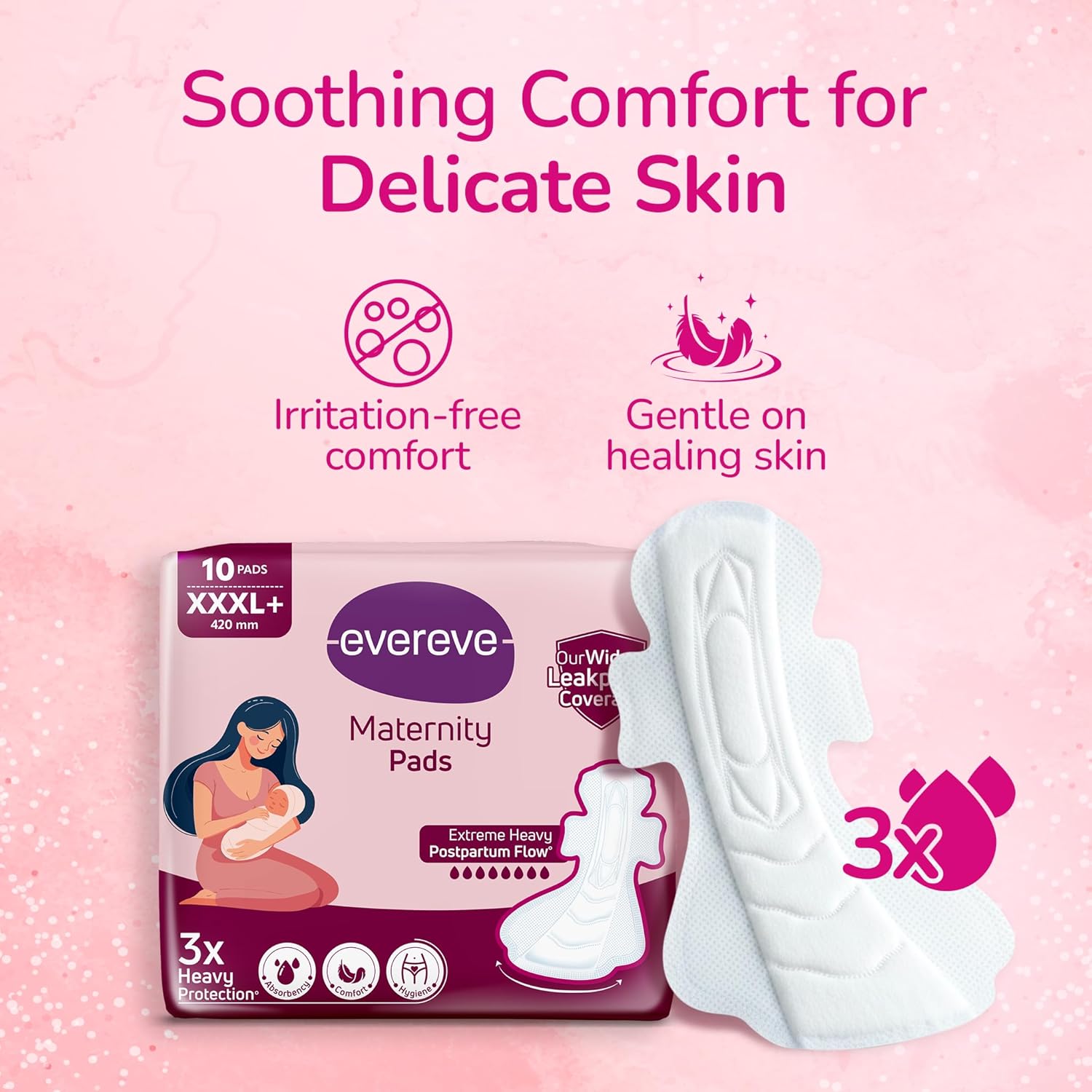 Evereve Maternity Pads XXXL+ 420mm, Widest Leakproof Coverage, 3X Absorbency, Comfort & Hygiene, Soft & Irritation-Free, Postpartum Pads for After Birth Recovery, Extreme Flow Protection, Pack of 10