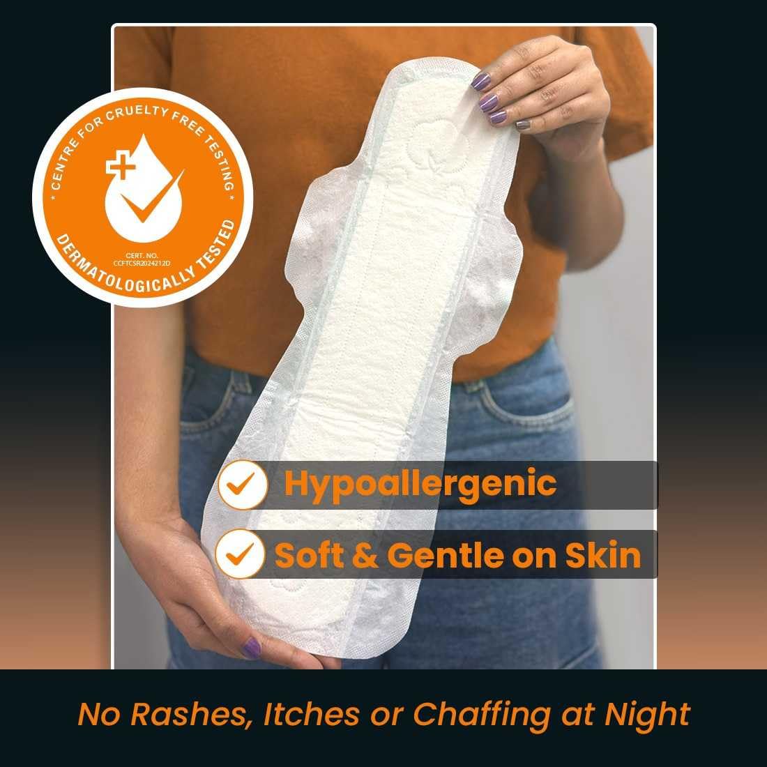 everteen Relax Night 30 XXXL Ultra Thin Sanitary Pads are designed for women experiencing super heavy flow. These pads offer wider back coverage and front-to-back protection, ensuring comfort throughout the night. With up to 12 hours of absorption, they are ideal for overnight use. The ultra-thin design provides discreet protection without compromising on comfort.