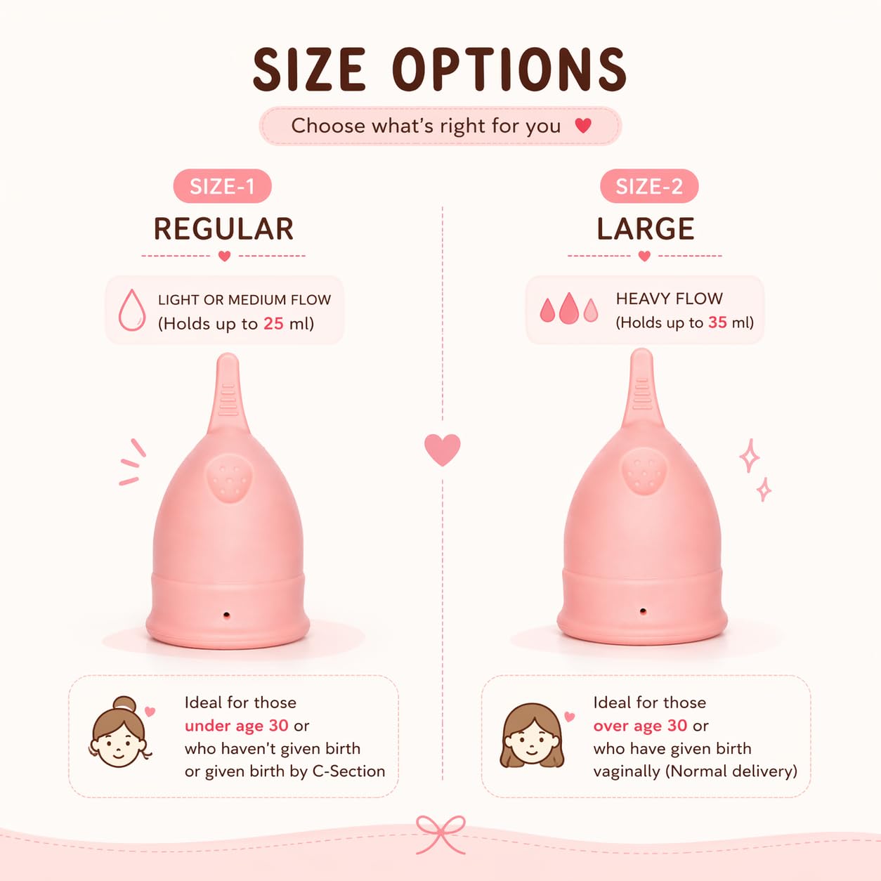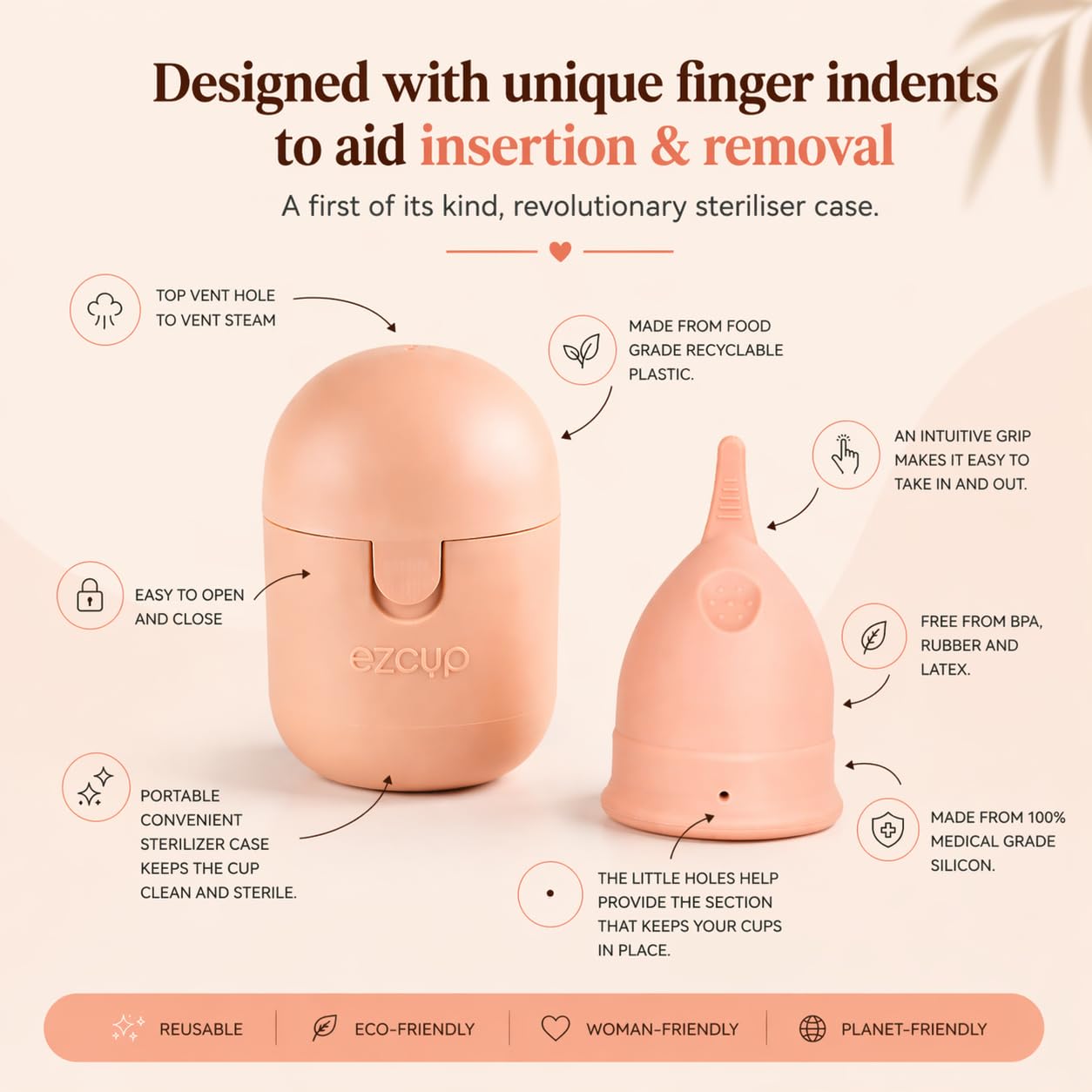 Ezcup Reusable Menstrual Cup for Women with an easy-to-use Portable Sterilising Container, 100% Medical Grade Silicone, FDA Approved, Up to 8-10 Hours use (REGULAR),Pink, Pack of 1