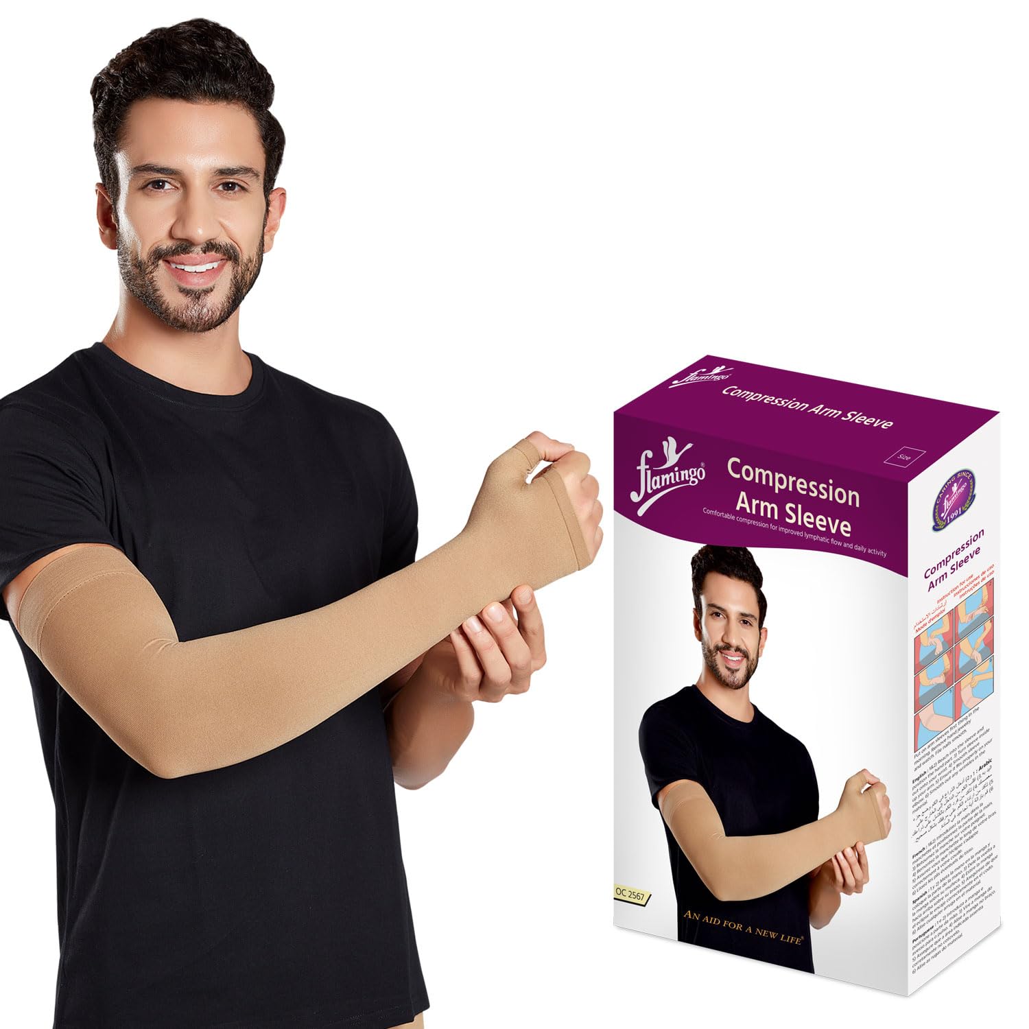 Flamingo Medical Compression Arm Sleeve | Lymphatic Support | Hand Sleeve | Lympedema Arm Sleeve | Hand Swelling | Medical Arm sleeve