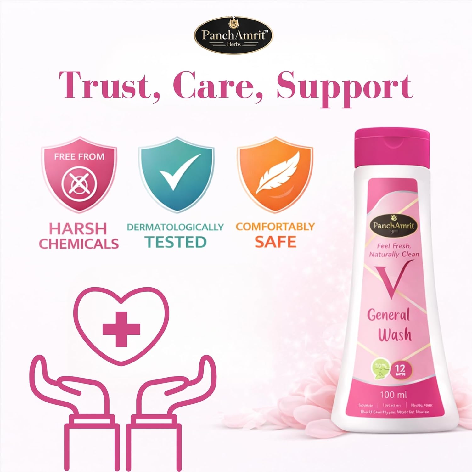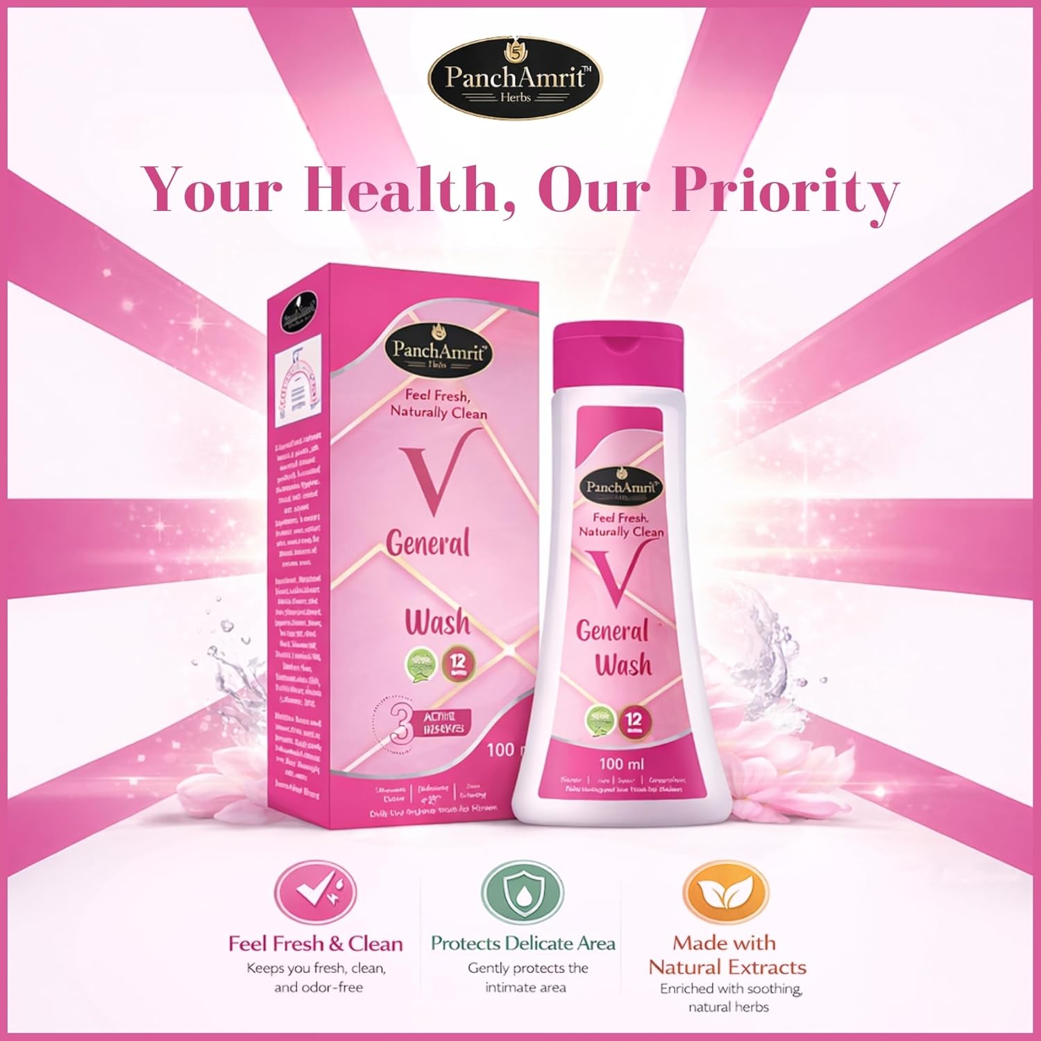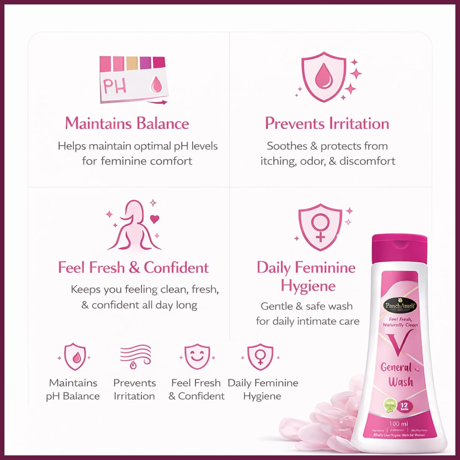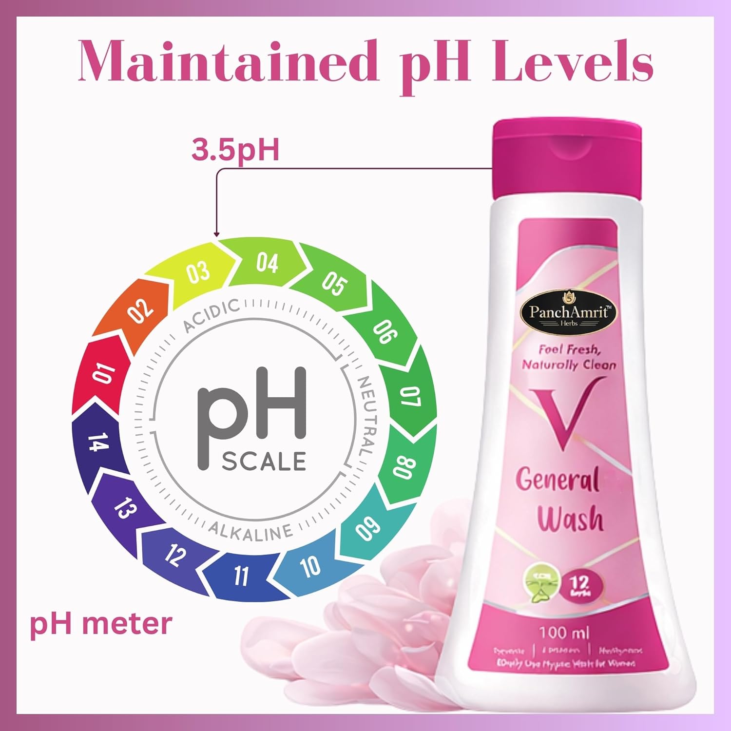 PanchAmrit General & Intimate Wash is a gentle cleanser designed specifically for women's daily hygiene. This pH-balanced formula is crafted with natural and organic ingredients, ensuring it cleanses effectively while maintaining the skin's natural balance. The soap-free composition helps eliminate sweat, impurities, and odor-causing bacteria without irritating sensitive skin. It is suitable for daily use and is dermatologically tested, making it a safe choice for personal care.