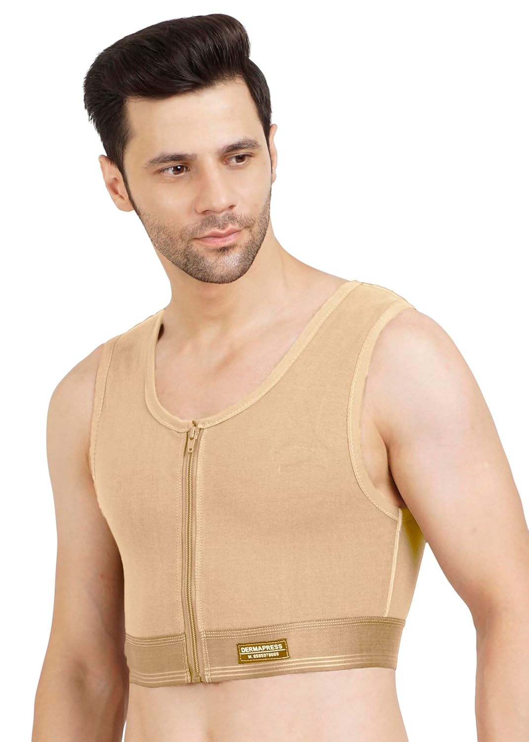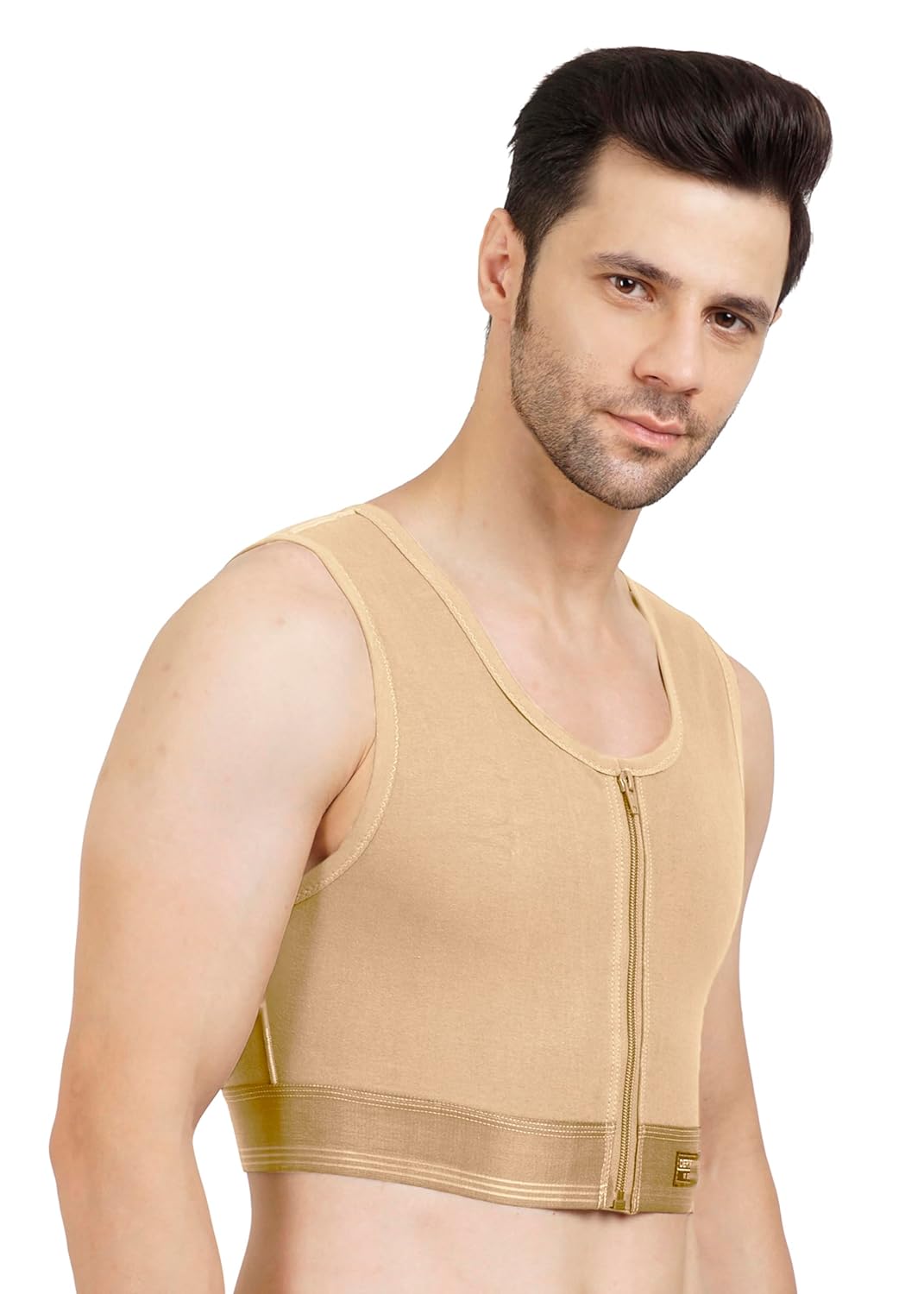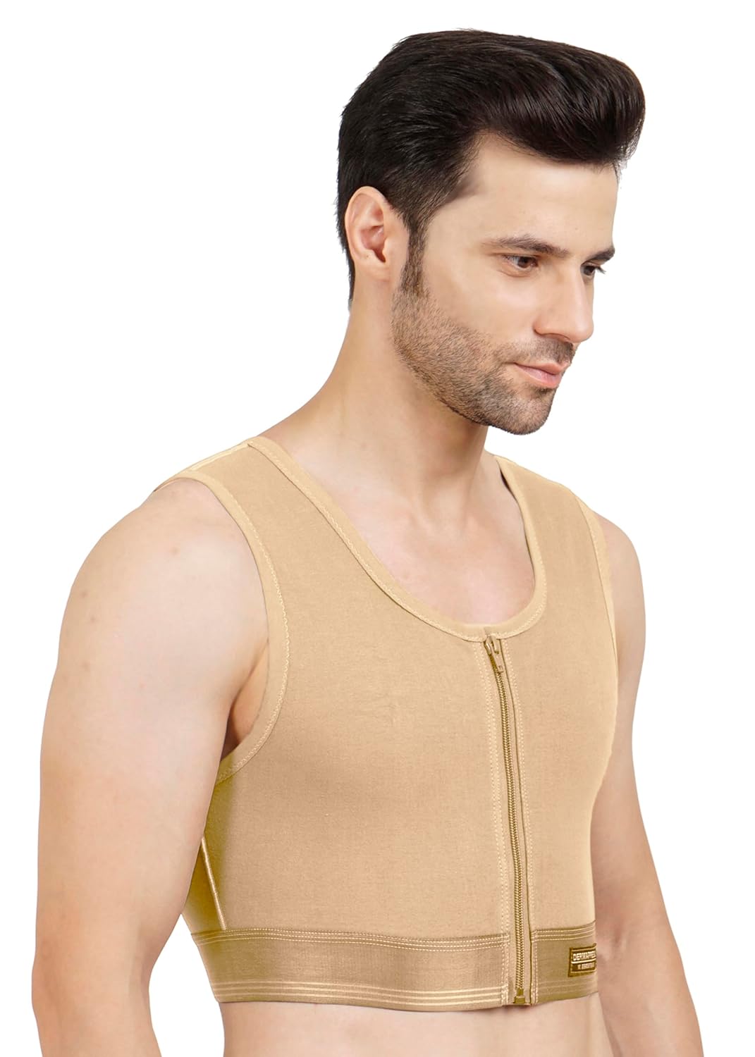 Gynecomastia Short Vest || HIGH COMPRESSION || Front Zip and Hook Closure || Tomboy Chest Binder || Comfortable Support for Men || Chest Shapewear || Post-Surgery Recovery ||