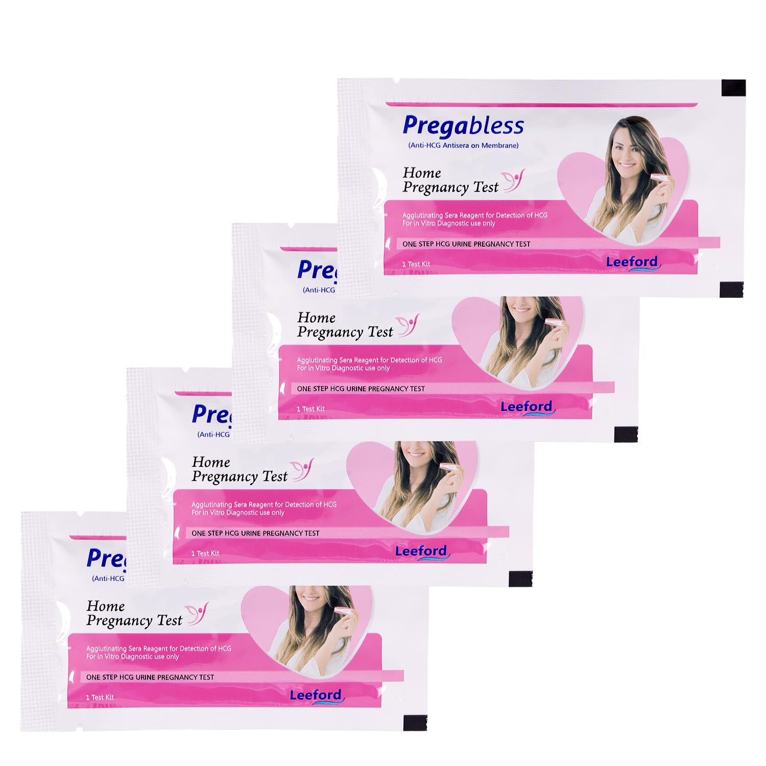 Leeford Pregabless Pregnancy Test Kit | AT Home Pregnancy Test | 1 Step HCG Urine Test | Accurate Result in 3-5 Minutes | Home Pregnancy Check | Single-Use Device with Dropper | Accurate & Easy to Use | Pack of 4