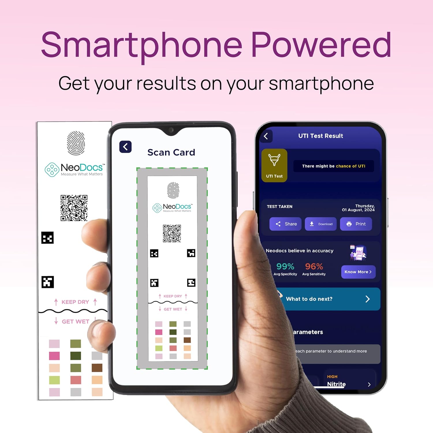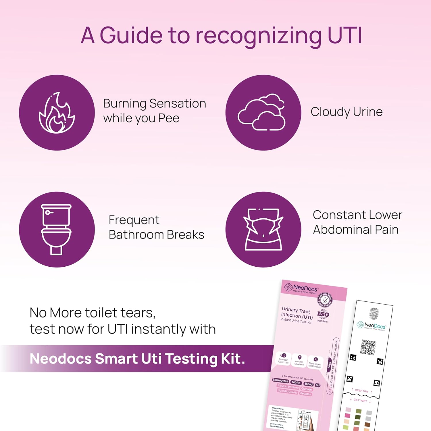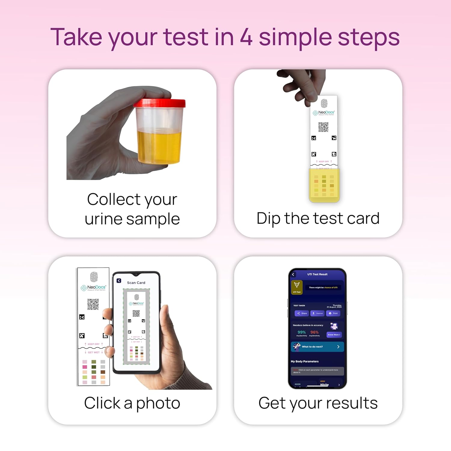 Neodocs UTI test kit for women | At home test | Results in 30 seconds on any phone | Track Leukocytes, Nitrites, Blood, pH and 4 other Parameters | (Pack of 5)