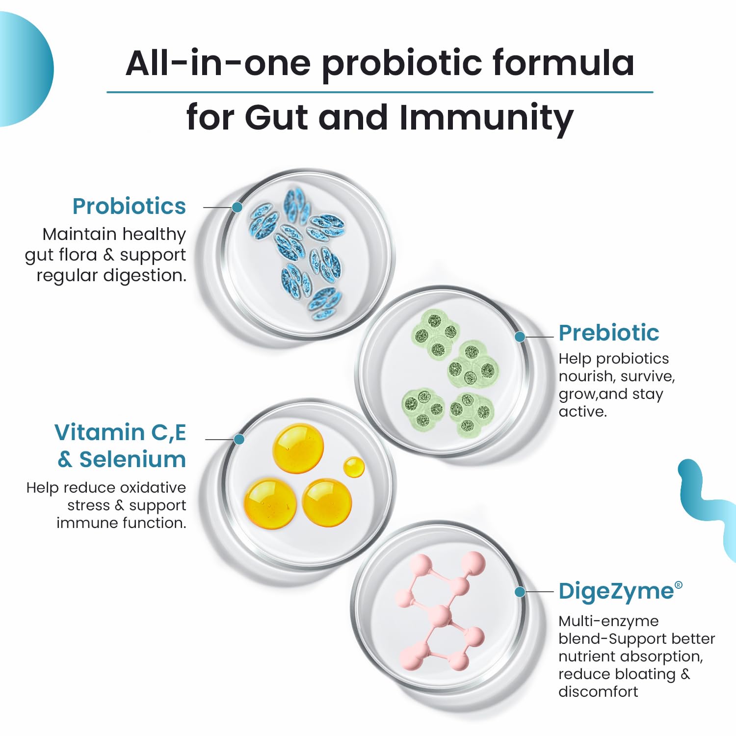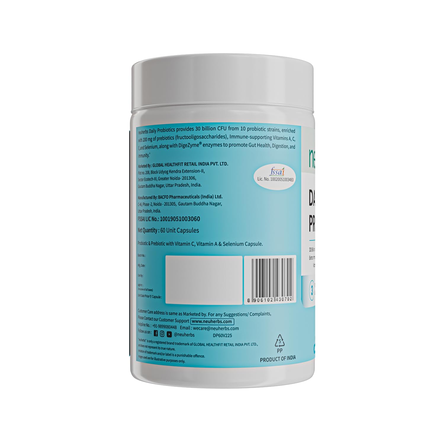 Neuherbs Daily Probiotics 30 Billion CFU with Prebiotics |Probiotics with Vitamin A, C & Selenium| Multi Strain Probiotic Capsules for Gut Health, Digestion, Immunity & Bloating Relief | 60 Capsules