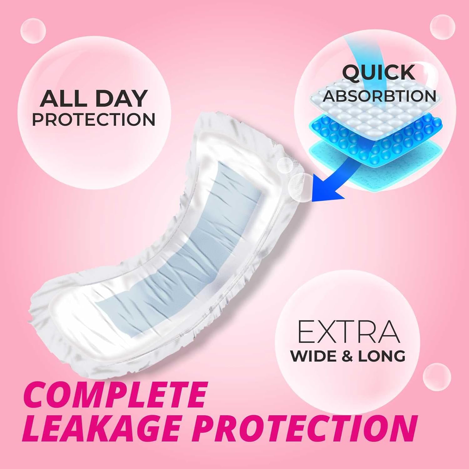 These maternity pads are super absorbent, leak-proof, soft, and non-irritating, making them ideal for extra heavy flow and urine incontinence.