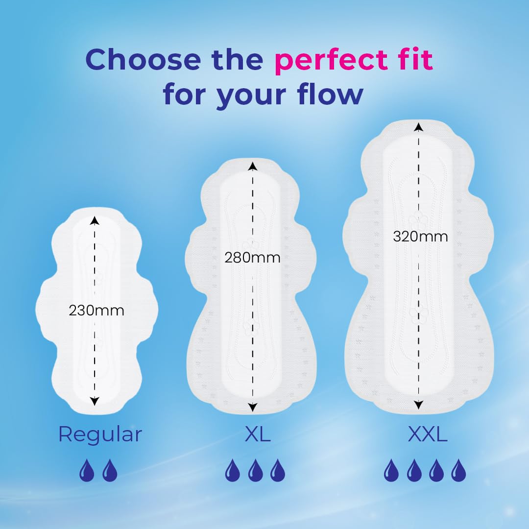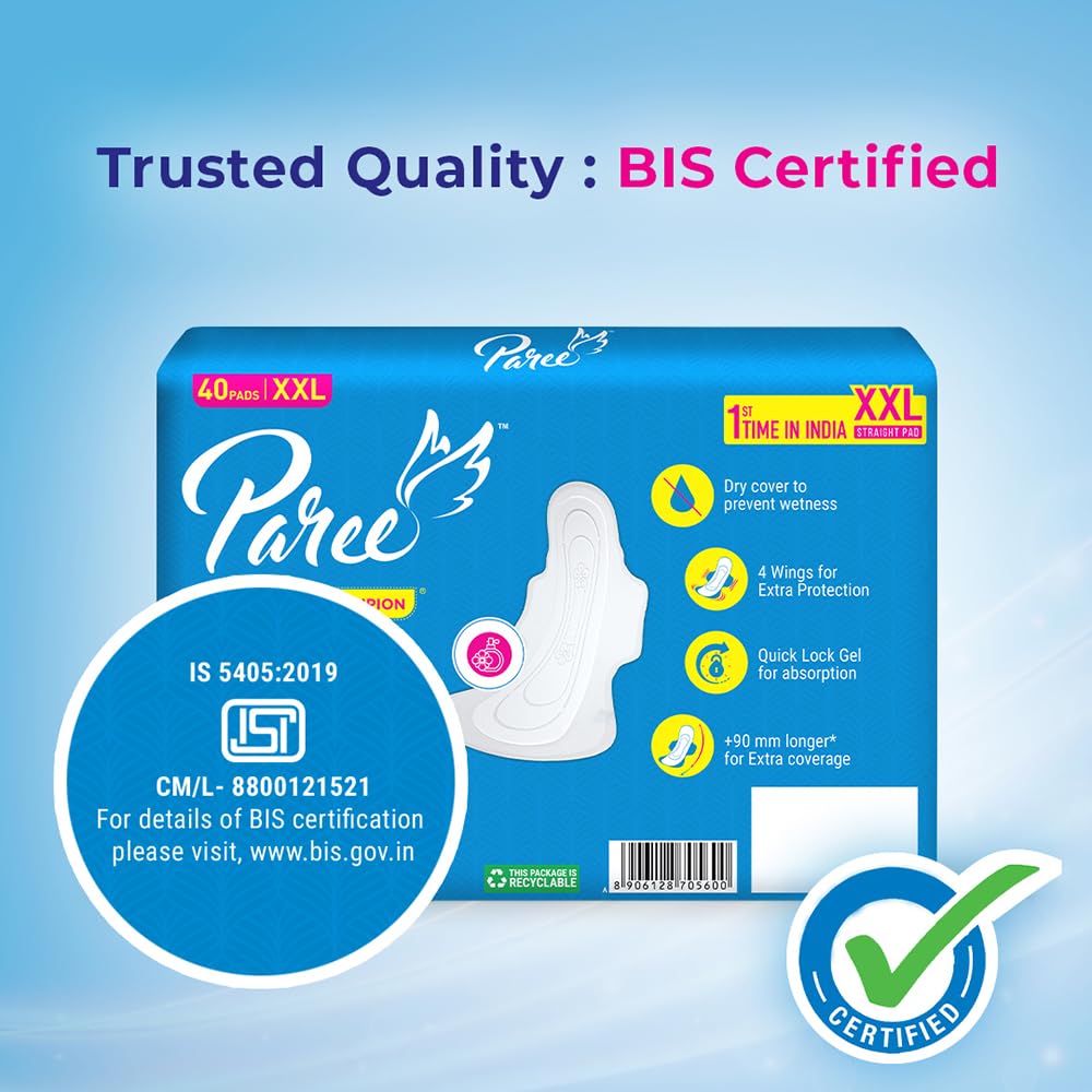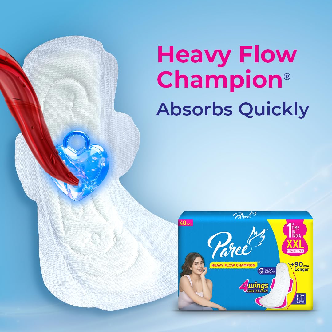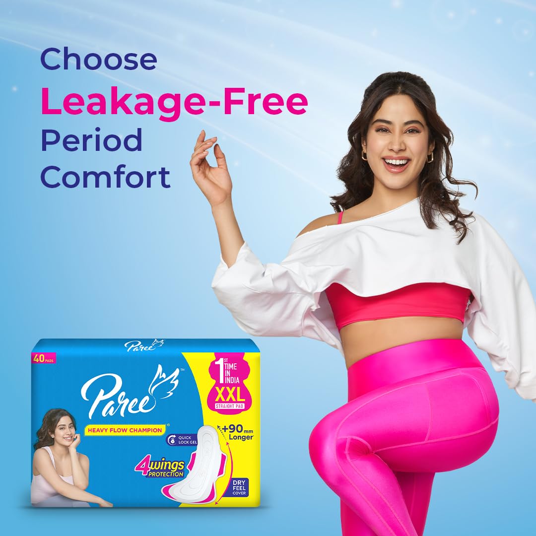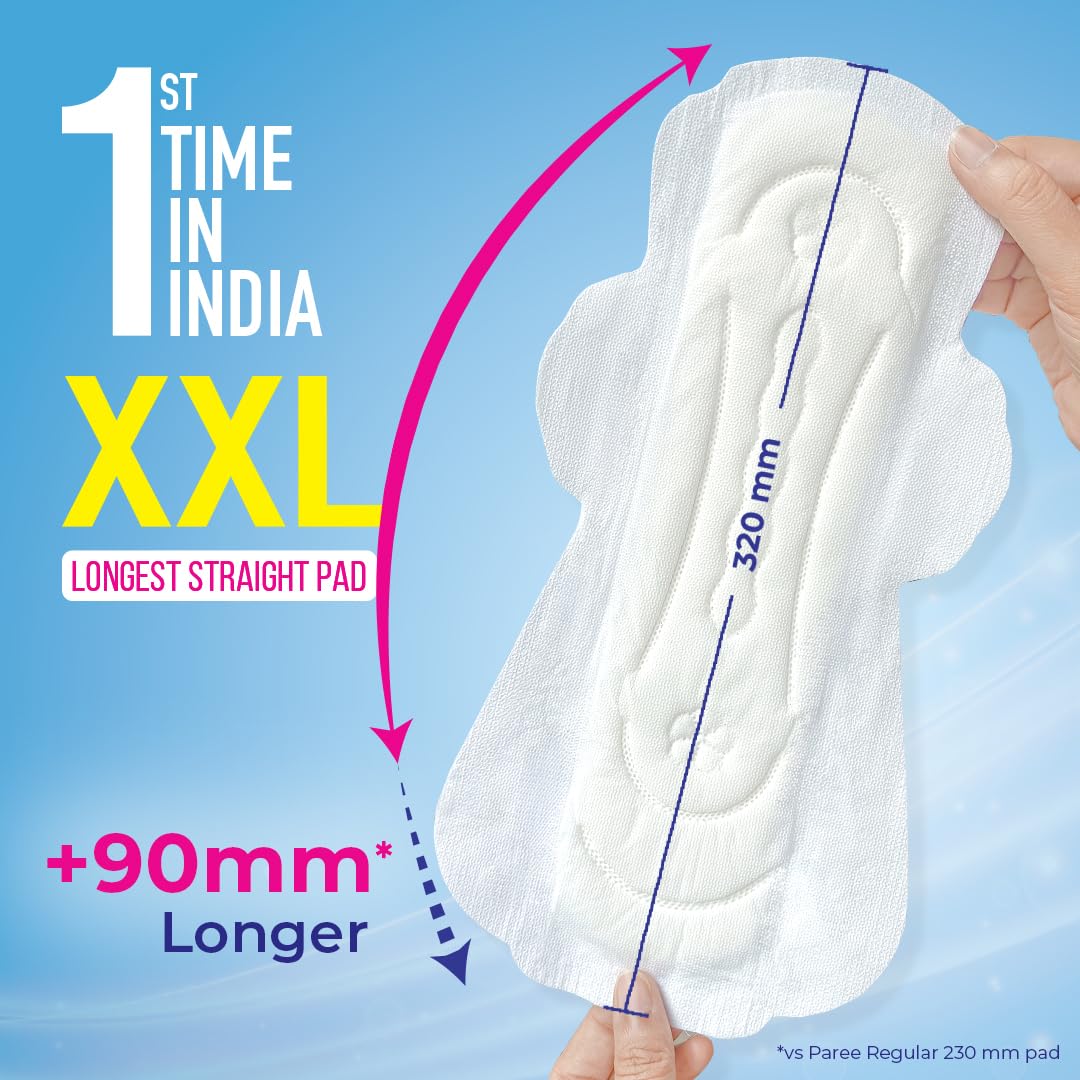 Paree Dry Comfort XXL Straight 40 Pads|1st Time in India XXL(320mm Longer) Straight Pads|3 Seconds Absorption|4 Wings Leakage Protection|Heavy Flow Champion Sanitary Pads for Women