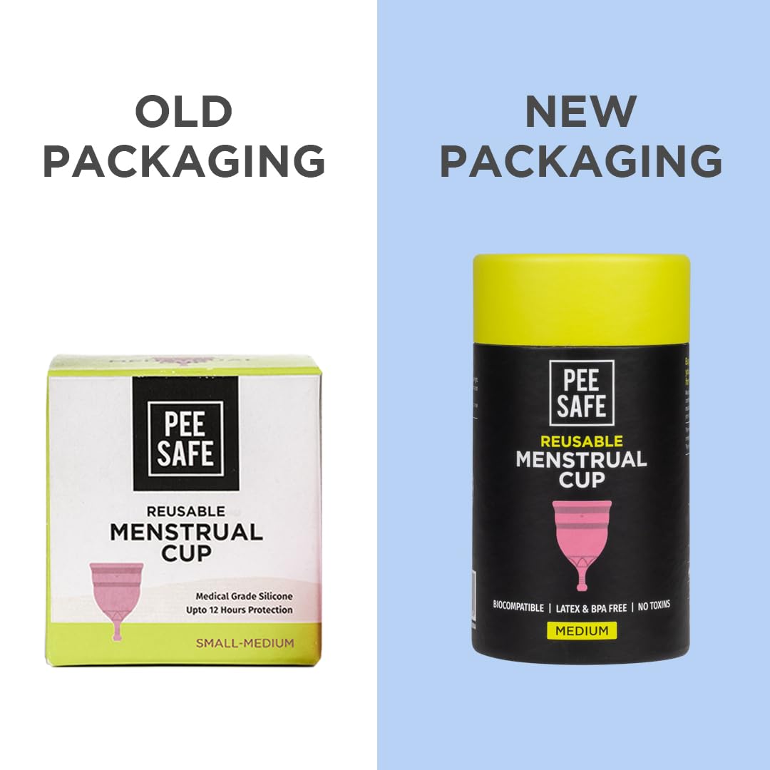 Pee Safe Reusable Menstrual Cup for Women | Medium Size with Pouch | Ultra Soft, Odour & Rash Free|100% Medical Grade Silicone|No Leakage|Protection for Up to 8-10 Hours | US FDA Registered,Pack of 1