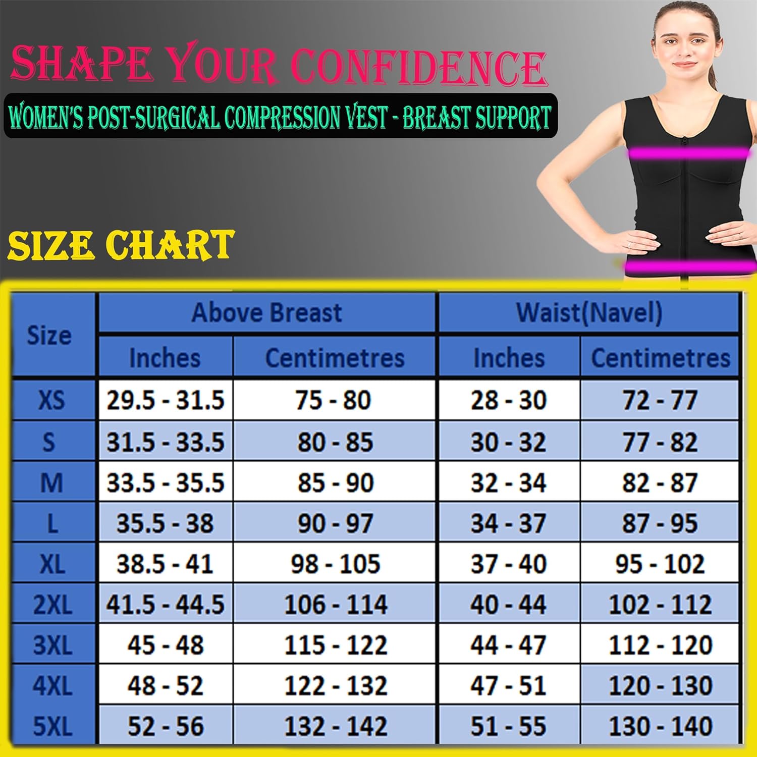 Post Liposuction Medical Compression Vest for Women || HIGH COMPRESSION || Cotton Fabric || Breast and 360 Degree Abdomen Compression || Surgical Recovery Supporter