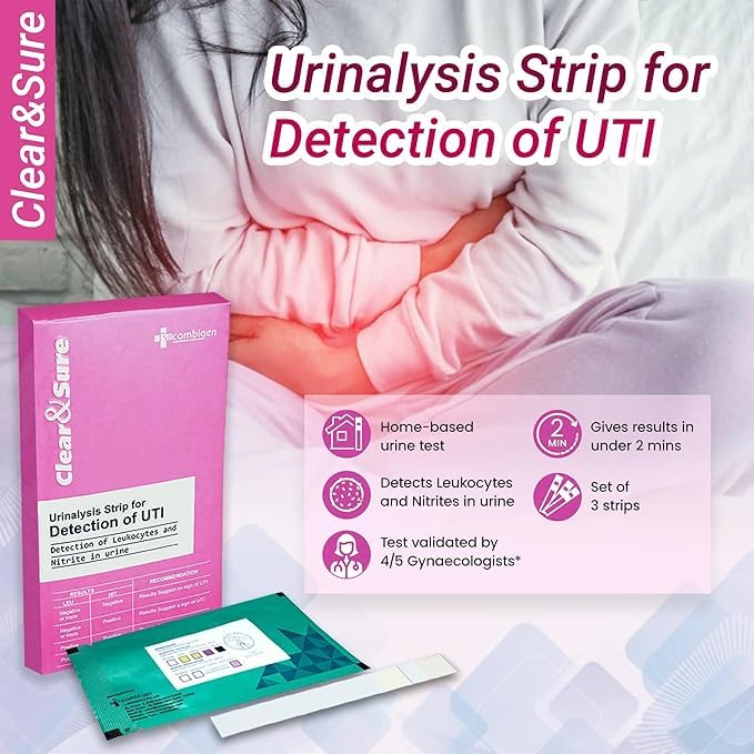 Recombigen’s Clear and Sure Peace of Mind UTI Rapid Test Kit | Fast & Private At-Home Screening Clinical Grade Urinary Tract Infection Test Strips (10 Pack)