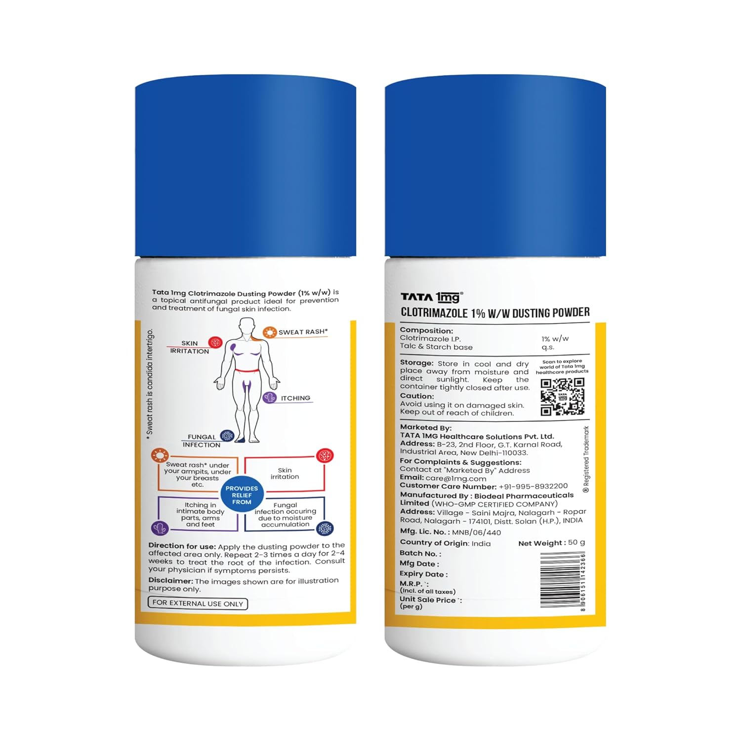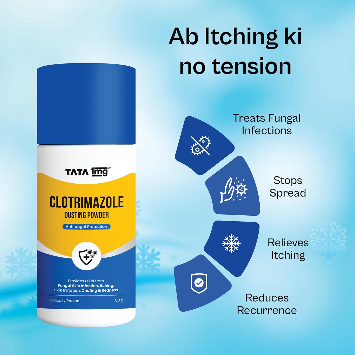 TATA 1MG Clotrimazole Dusting Powder for Sweat Rash, Itching, Skin Irritation, Chafing & Redness – 1 * 50gms