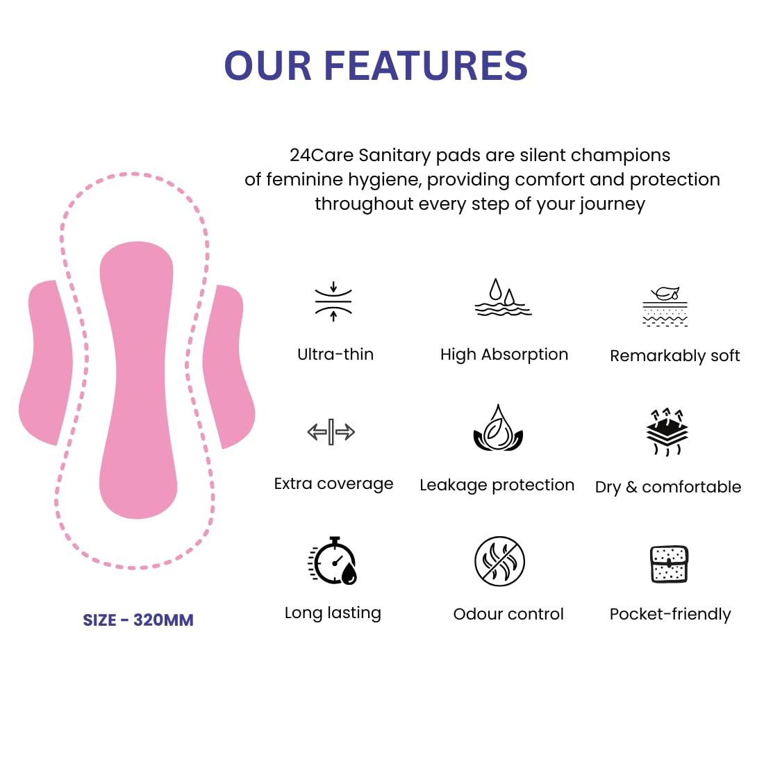 - Extra long for overnight protection