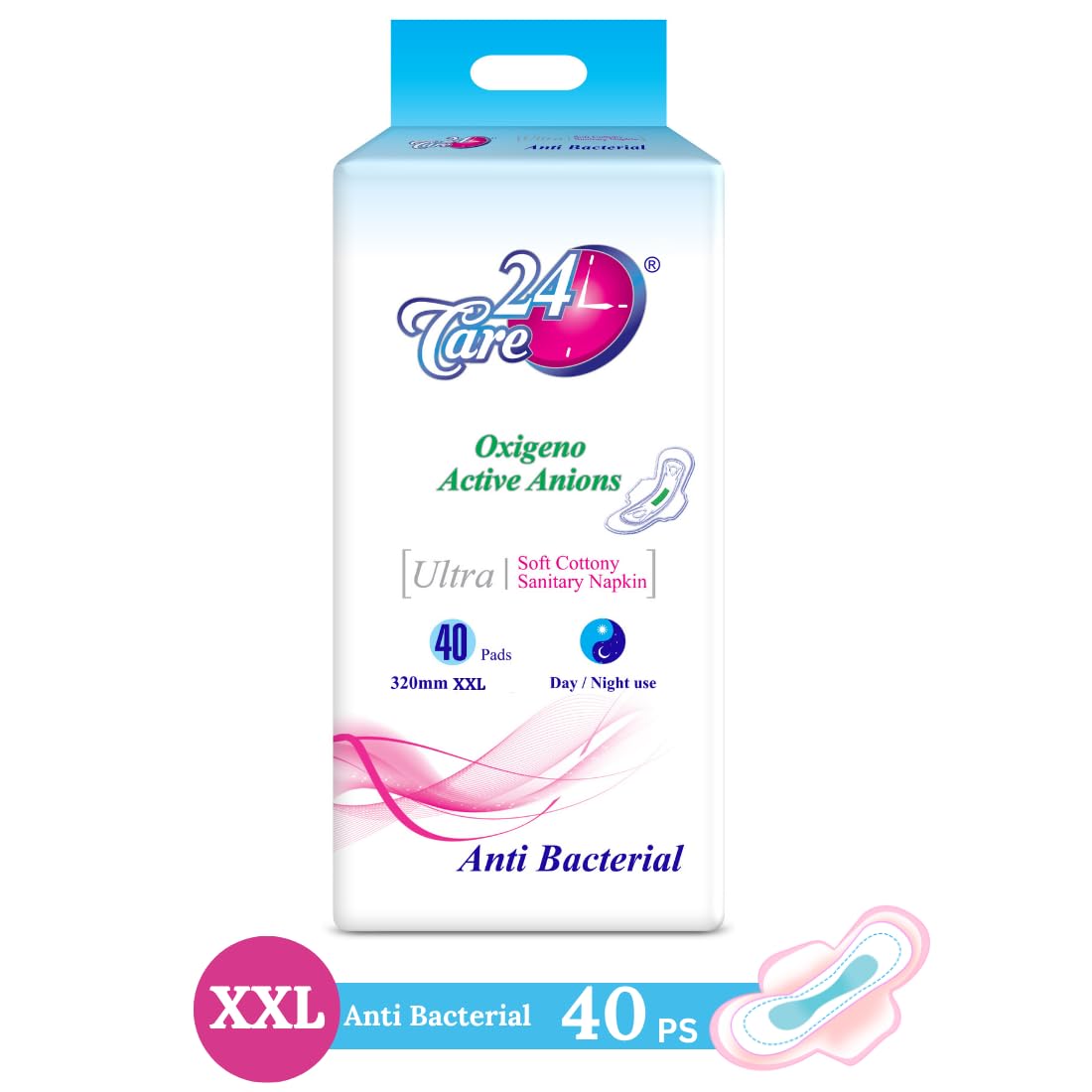 Ultra Sanitary Pads Combo Pack – 8 XL + 40 XXL | Anti Bacterial | Oxygen Anion Technology | Extra Long Overnight Pads for Heavy Flow | Super Absorbent | Leak Proof Feminine Hygiene (XXL, 40, count)